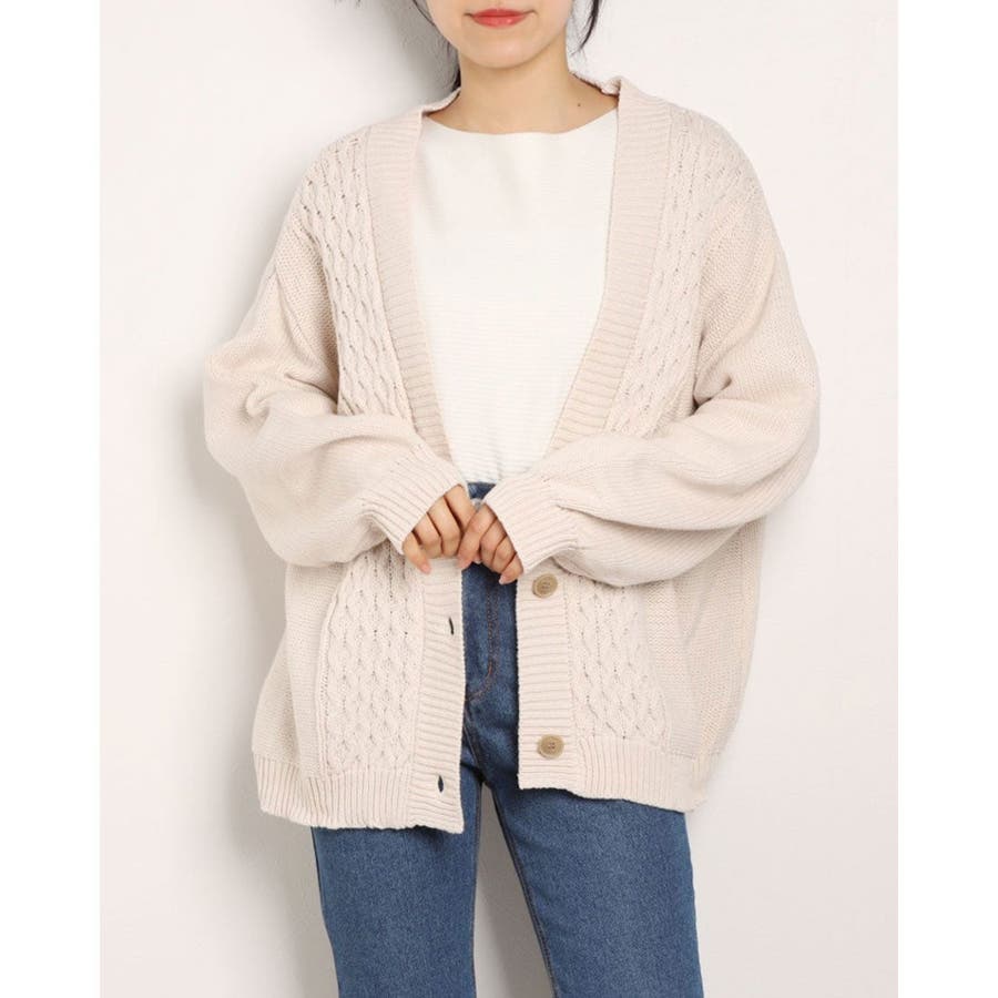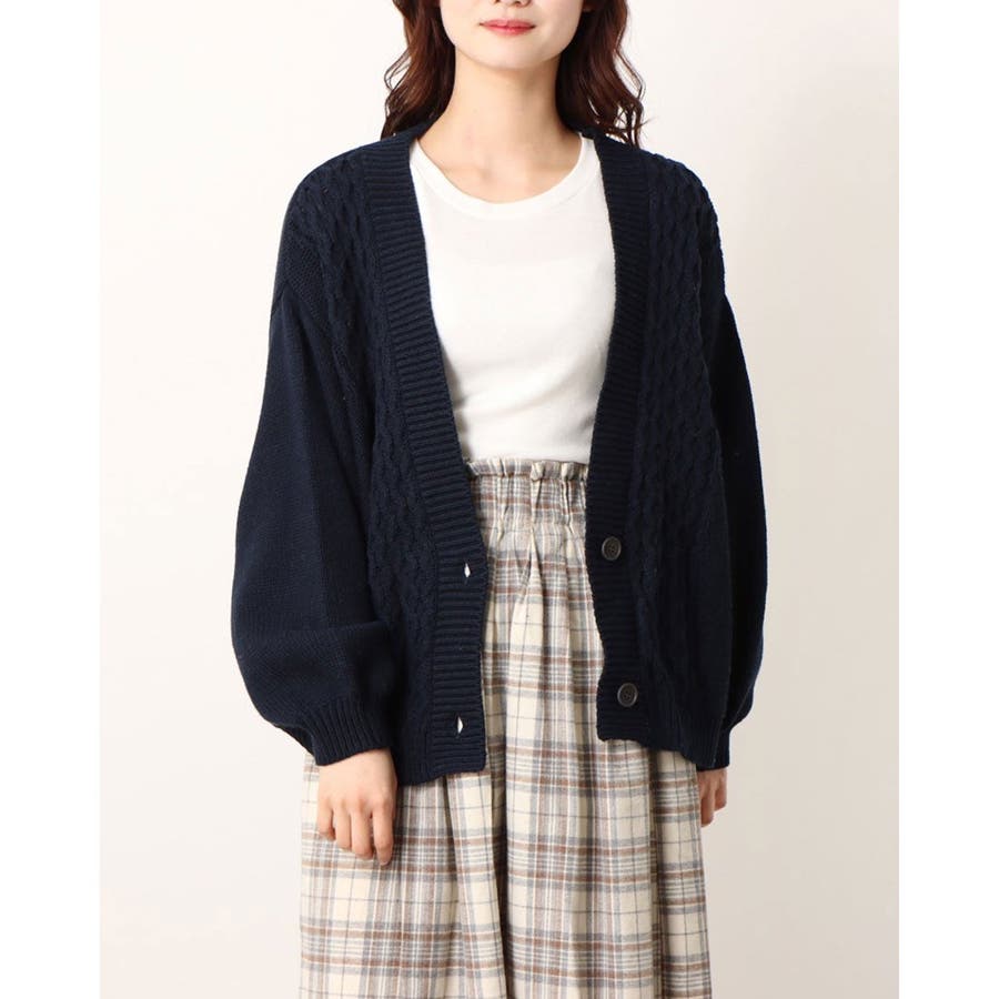 ケーブル編みがカジュアルでデイリー使いしやすいカーディガン。