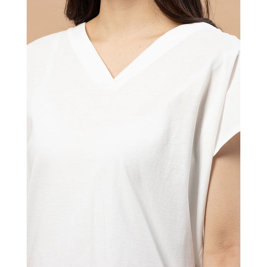 【Perle Peche】シルケットバックタックVネックカットソー