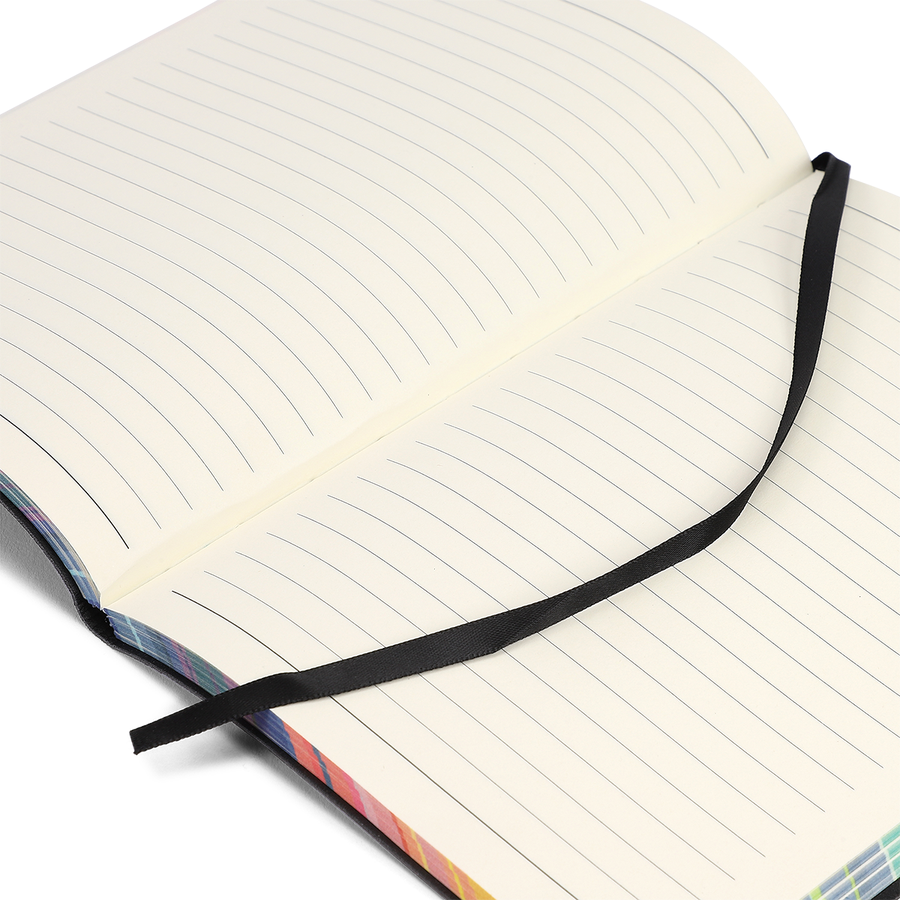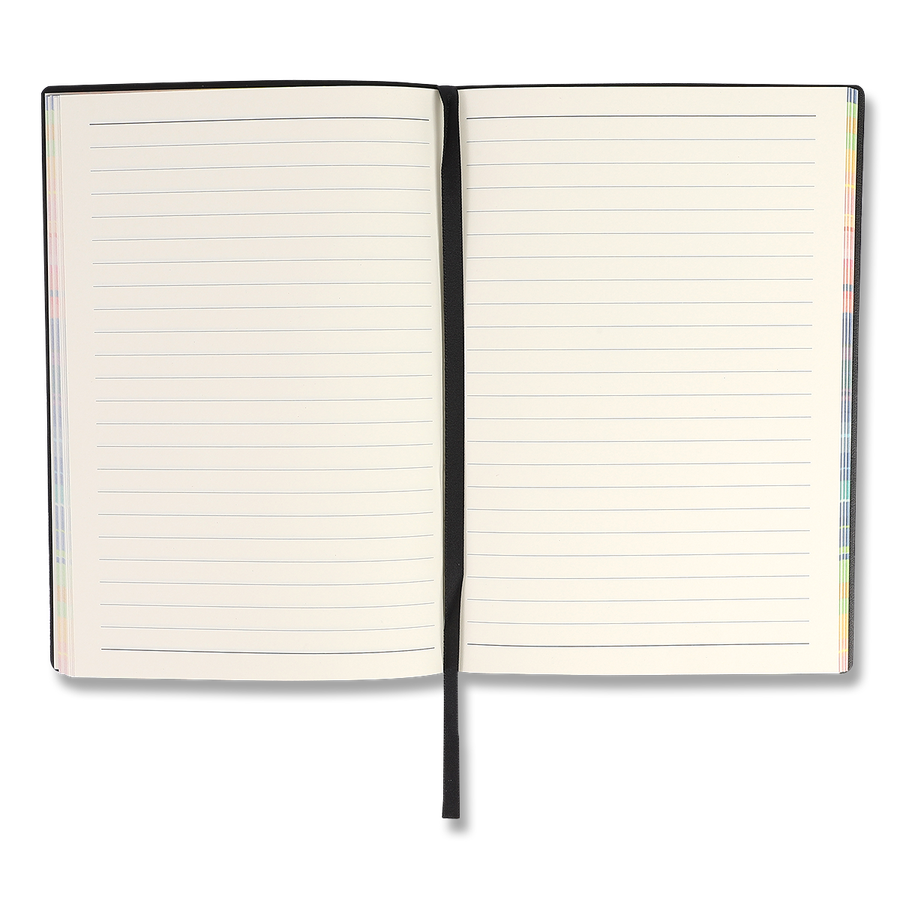 もの自体は他の方が仰るよう皮のような滑らかなカバーと端に綺麗な色が施されていたり、しおりもついていてすごく素敵なノートですが、カバーについていた商品説明のシールを剥がそうとしたらカバーも一緒に剥がれてしまい、一部分だけバックスキンのようなみすぼらしい状態になってしまいました(;_;)シールの跡も四角く残っているので、剥がさなければ良かったと後悔しています。