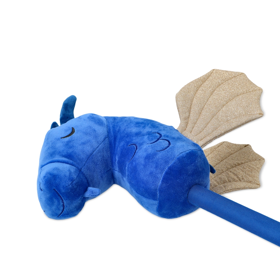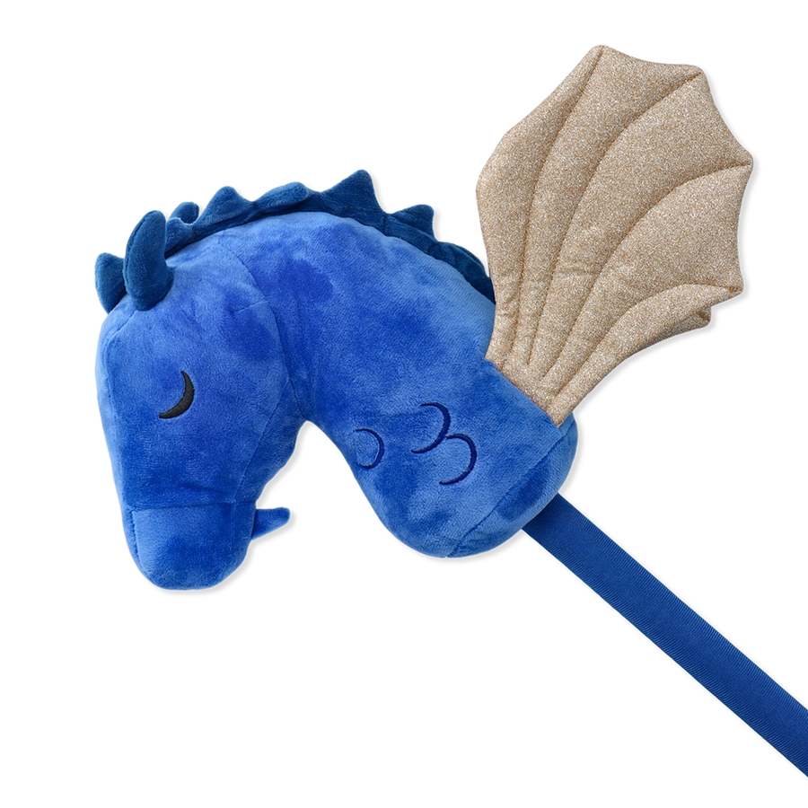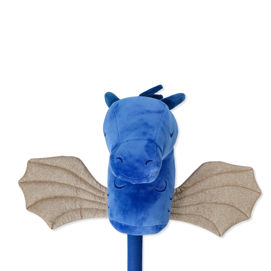 ドラゴンのホーススティック。やわらかいポリエステル製です。想像力豊かなお子様の夢を膨らませてください。魔法の国のような楽しいごっこ遊びをお楽しみください。推奨年齢2才以上です。手洗い可能です。サイズ:11×78×22 cm。