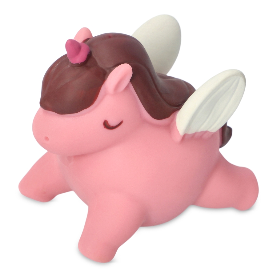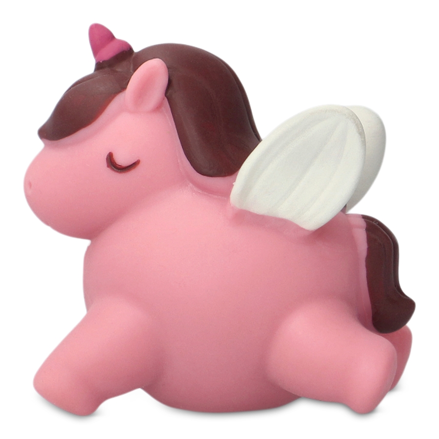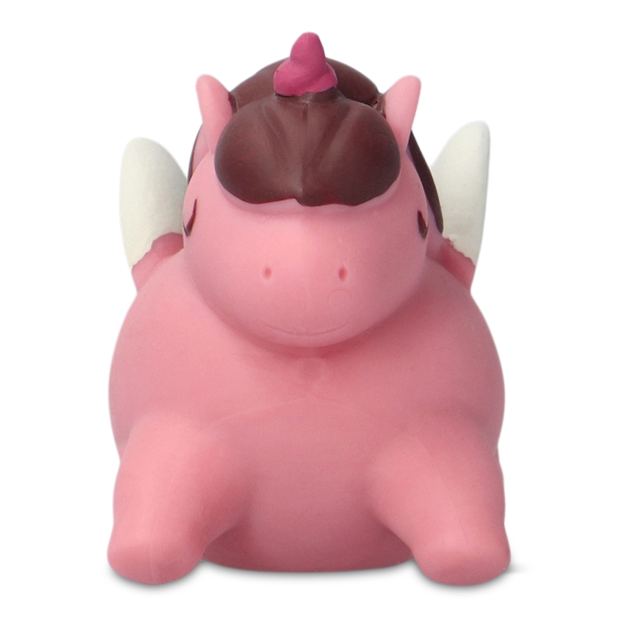ユニコーンのおもちゃ。ぎゅっと握ると、中身がぶわっと出てきます。対象年齢3才以上です。サイズ:7.6×5.2×7.6 cm。