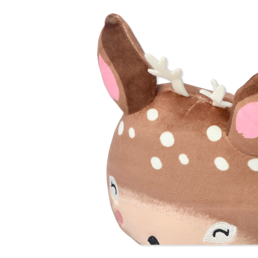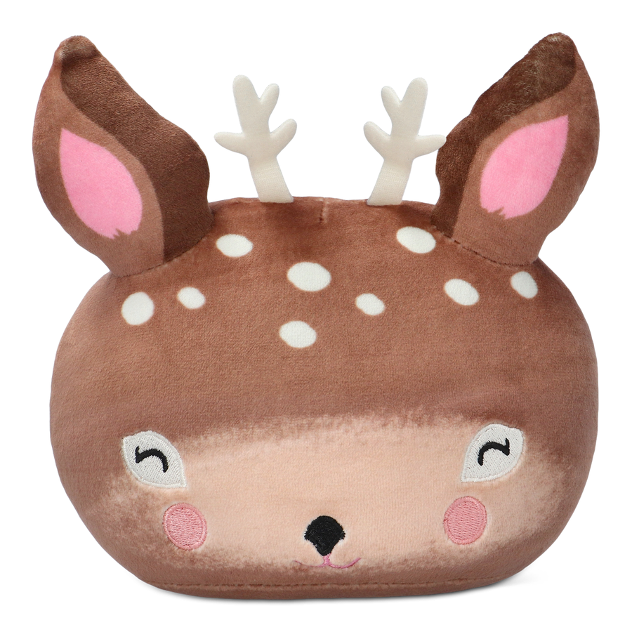 トナカイのぬいぐるみ。やわらかいポリエステル製です。手洗い可能です。サイズ:14×15×9 cm。