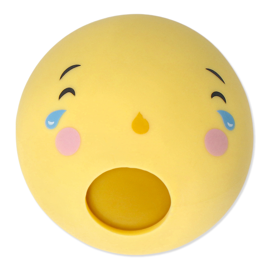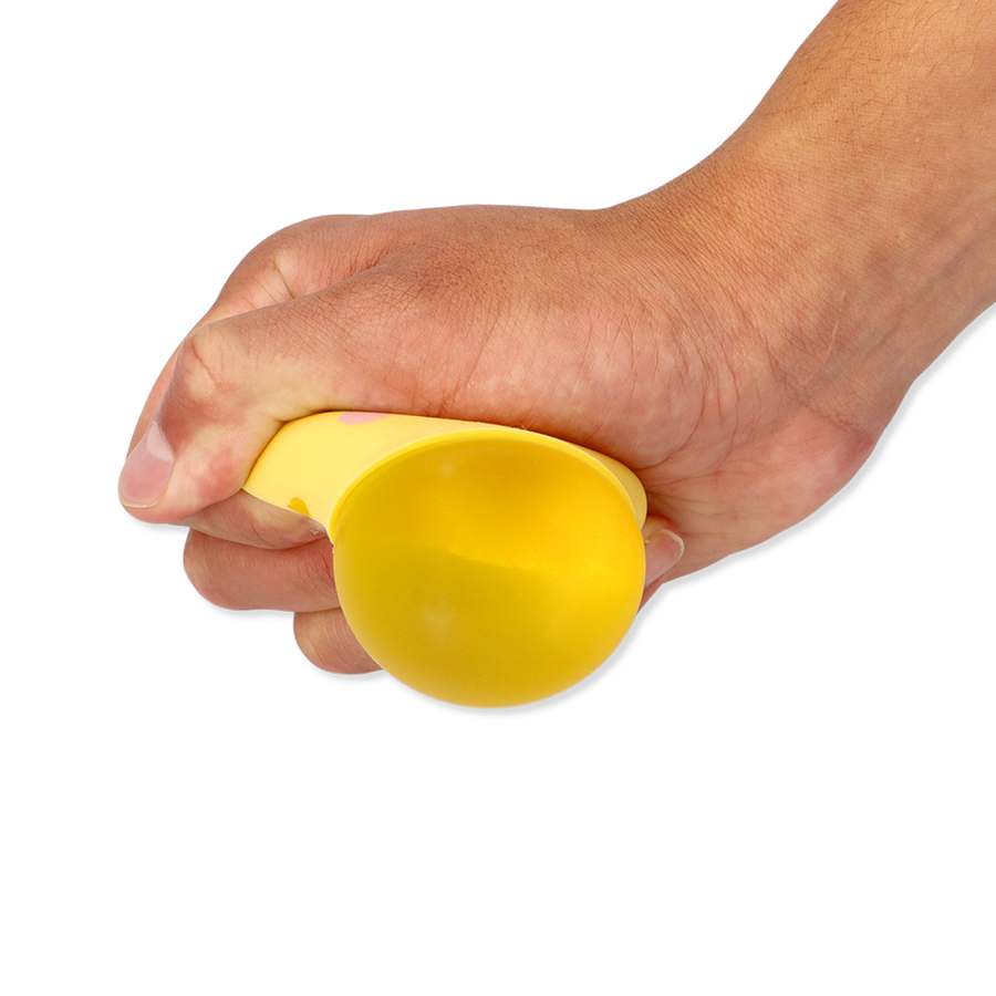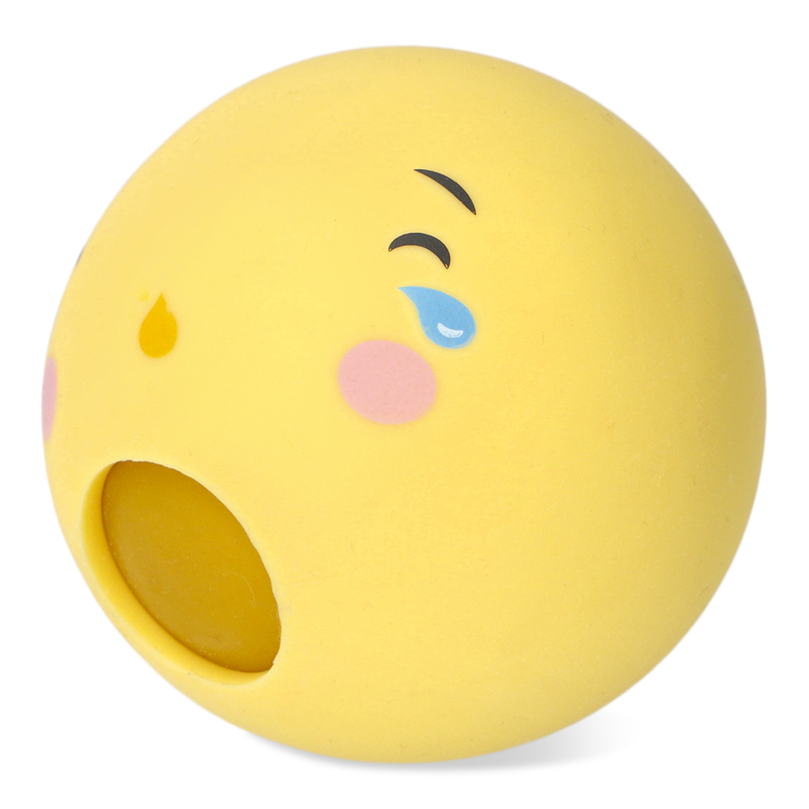ハッピーフェイスのおもちゃ。ぎゅっと握ると口から中身がぶわっと出てきます。"Happy"ちゃんをぎゅっとして、幸せな時を過ごしましょう。サイズ:6.1×6.1×6.1 cm。