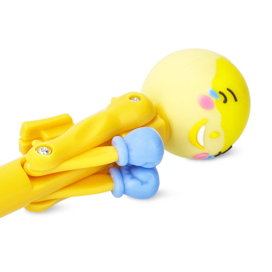 ハッピーフェイスのボクシングボールペン。背中のボタンを押すとワンツーパンチをくり出します。"Happy"ちゃんはみんなにハッピーを届けます。筆記具に遊び心をプラスしましょう。対象年齢3歳以上。サイズ:18×3×3 cm。