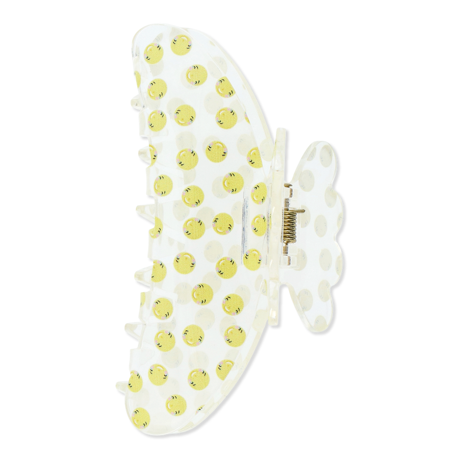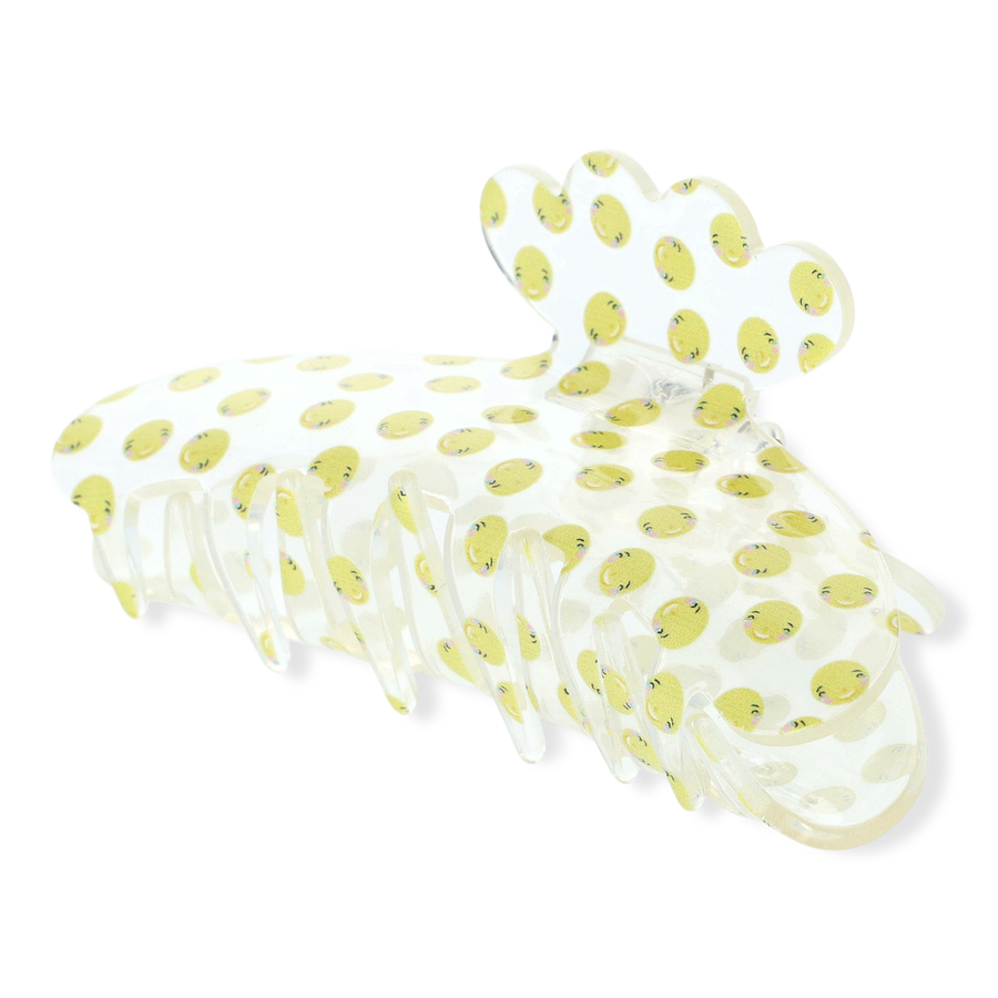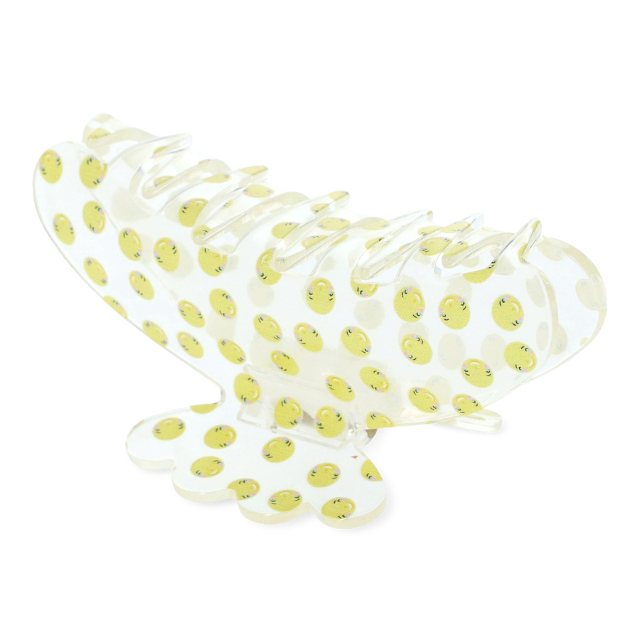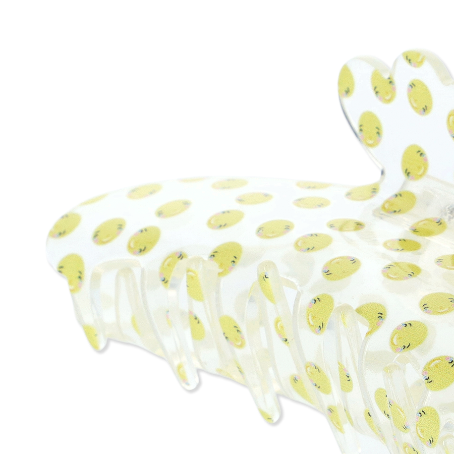 "Happy"フェイスデザインのヘアクリップ。明るいムードのヘアアクセサリーです。サイズ:4×8.2×3.9 cm。