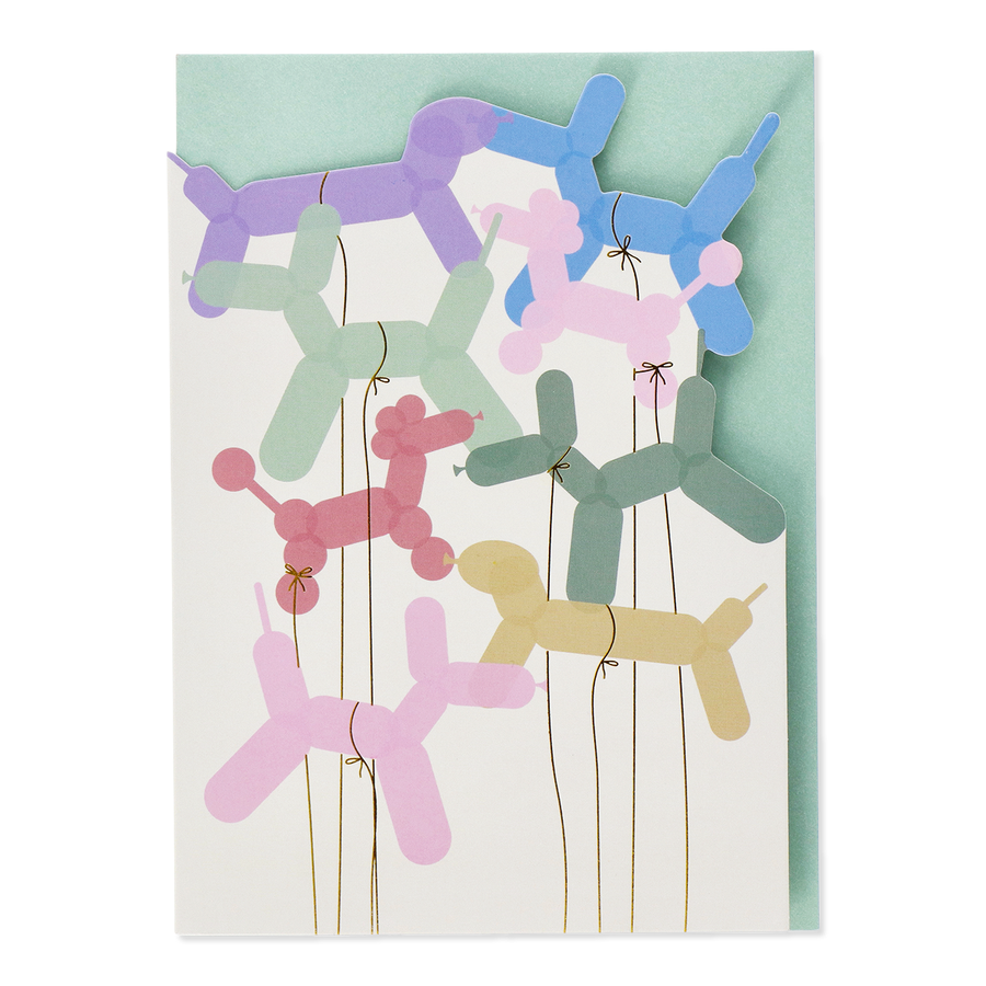 バルーンのメッセージカード。封筒付きです。閉じた状態のカードのサイズ:16×11.5 cm。FSC認証のエコフレンドリーなアイテムです。