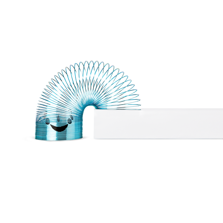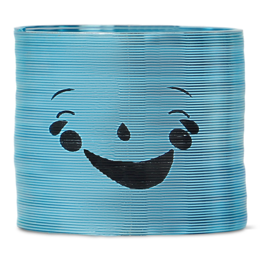 "Happy"フェイスプリントのスプリングトイ。お顔を伸ばしたり、縮めて遊ぶシュールなアイテムです。サイズ:4.9×5.8×5.8 cm。