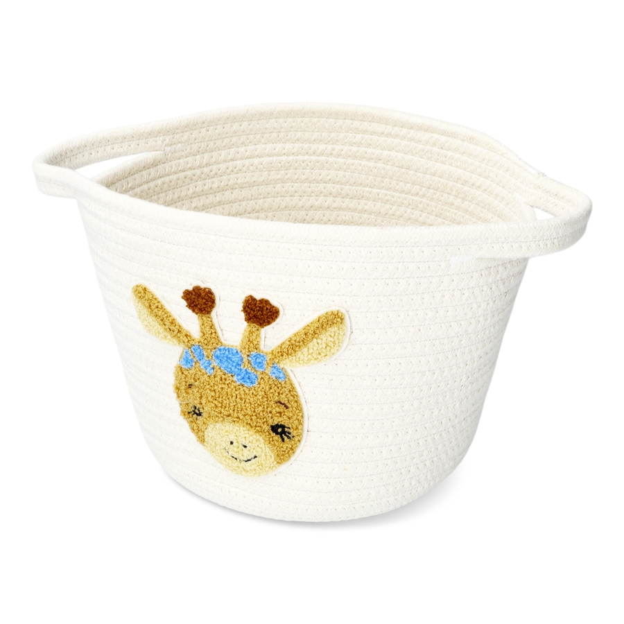 コットンバスケット。かわいいキリンのパッチが付いています。子どものおもちゃや小物入れに最適です。サイズ:18×23×30 cm。