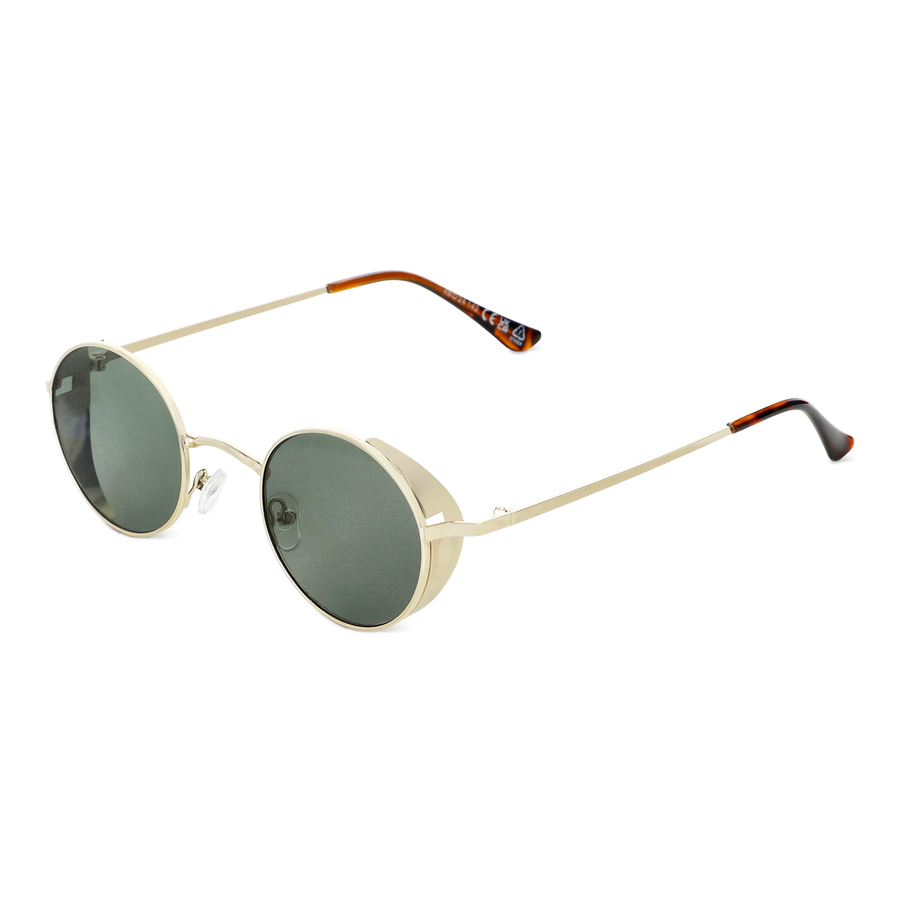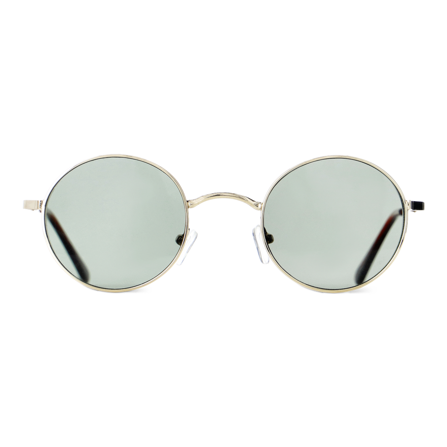 縁の部分がメタリックな大人デザインのサングラス。クールでおしゃれなあなたへ