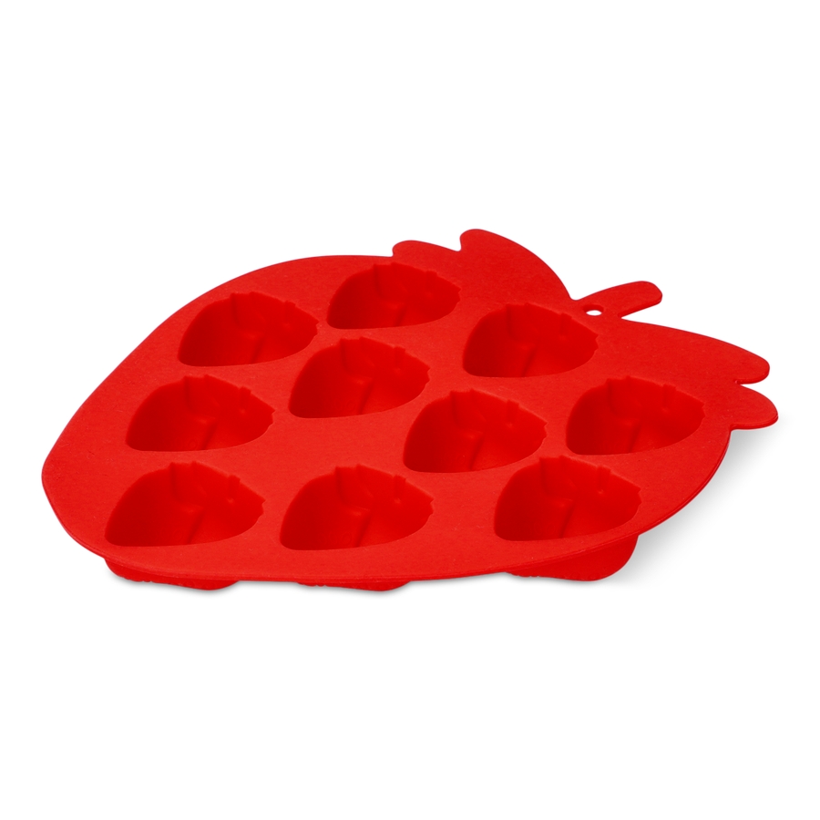 サッカーのフォーメーションかと思ってしまう程の綺麗なラインナップ。1回で10個のいちご氷が作れます。ここまでぎっしり未が詰まっているいちごはなかなかなものです。シリコンなので取り出しやすさも魅力ですね。