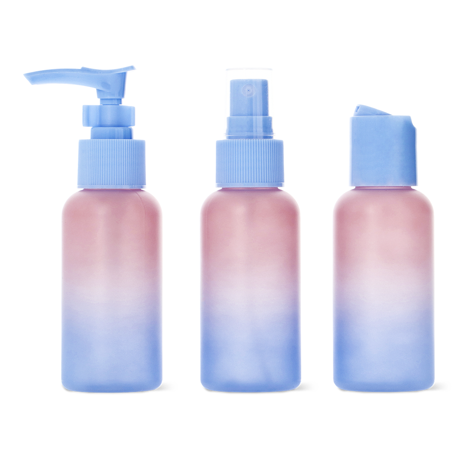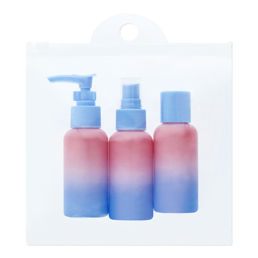 シックなサマーグラデーションの80mlボトル3本のトラベルセットで、スタイリッシュに旅立ちましょう。大きさ3.8×12cmのボトルは、どんな荷物にもすっきりと収まるので、必要な水分を持ち運ぶのに最適。