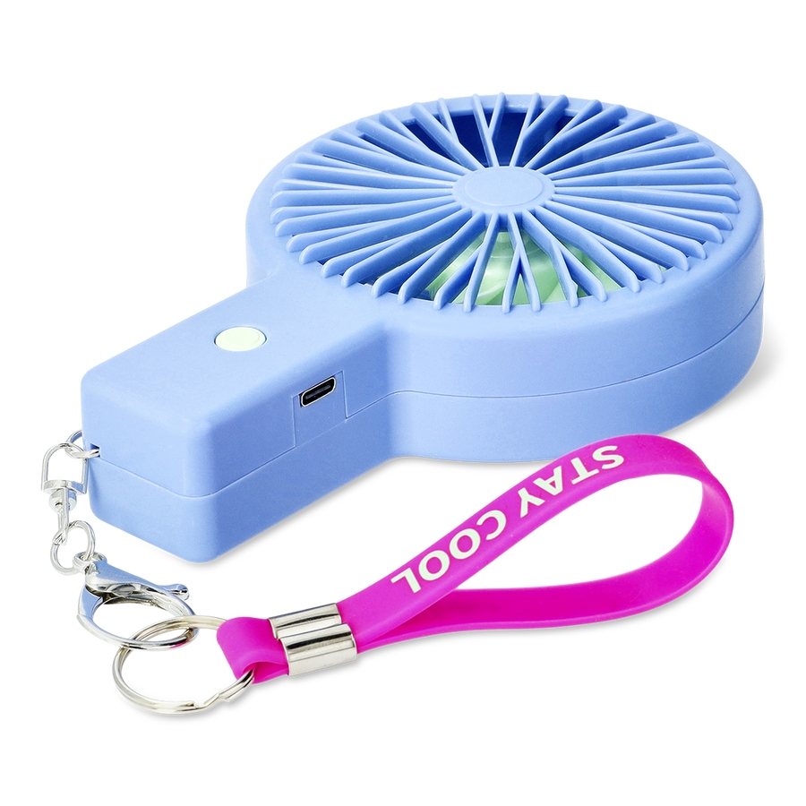 キーチェーン付きの便利な充電式ブルー扇風機で、移動中もクールダウン。サイズはわずか15×3.4×9.8cmで、どこにでも持ち運べるサイズです。30cmのケーブルで充電も可能。