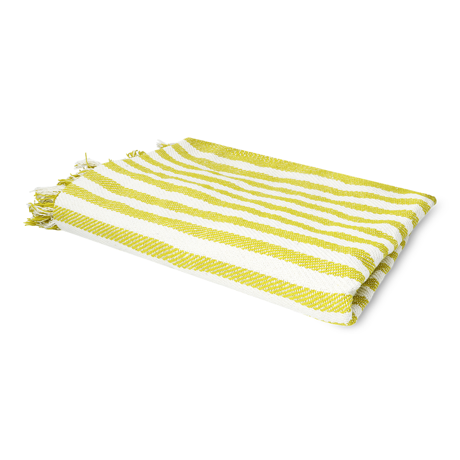 このブランケットは、北欧デザインの魅力を存分に感じさせるアイテムです。鮮やかなライムグリーンとクリーム色のストライプが特徴で、お部屋に明るいアクセントを加えます。柔らかな素材を使用しており、肌触りが非常に心地よく、リラックスタイムの必需品になること間違いなしです。端に施されたフリンジがカジュアルながらも洗練された印象を与え、リビングルームやベッドルーム、さらにはアウトドアでの使用にも最適です。北欧のデザインが好きな方には特におすすめのブランケットで、ギフトとしても喜ばれることでしょう。毎日の生活に彩りと快適さをもたらすこのブランケットで、お家時間をより豊かなものにしましょう。