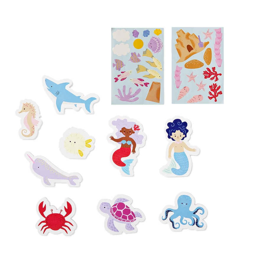 鮮やかな海底をテーマにしたプレイ・スーツケースで、持ち運び可能なイマジネーションの世界に飛び込みましょう。この15×20×10cmの旅行用プレイシーンは、27枚のステッカーと10枚の厚紙でできた人魚や海の仲間たちと一緒に箱の中で生き生きと動き出します。お出かけ先でのクリエイティブな遊びにも最適で、お子様のホビー・コレクションに華を添えること間違いなしです。