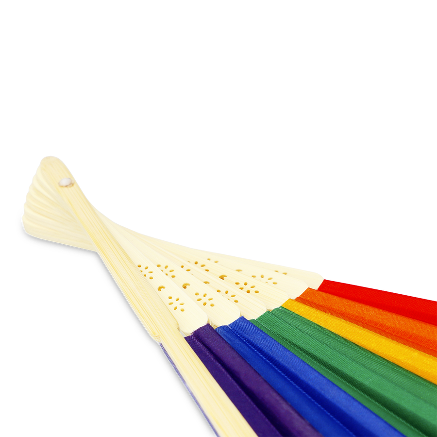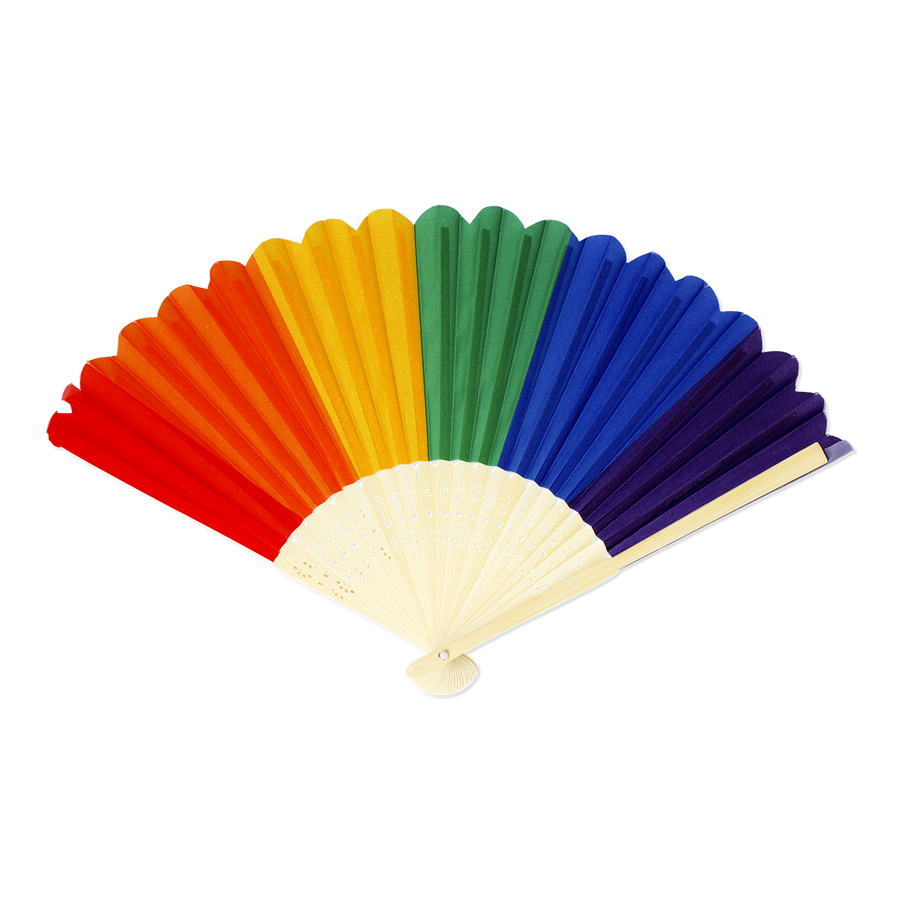 スカラップ・エッジとレインボー・カラーが特徴の折りたたみ式扇風機で、涼しくスタイリッシュに過ごそう。竹、プラスチック、リサイクルポリエステル製で、サイズは38×21.7cm。屋外のイベントで暑さをしのいだり、インテリアにカラフルなアクセントを加えます