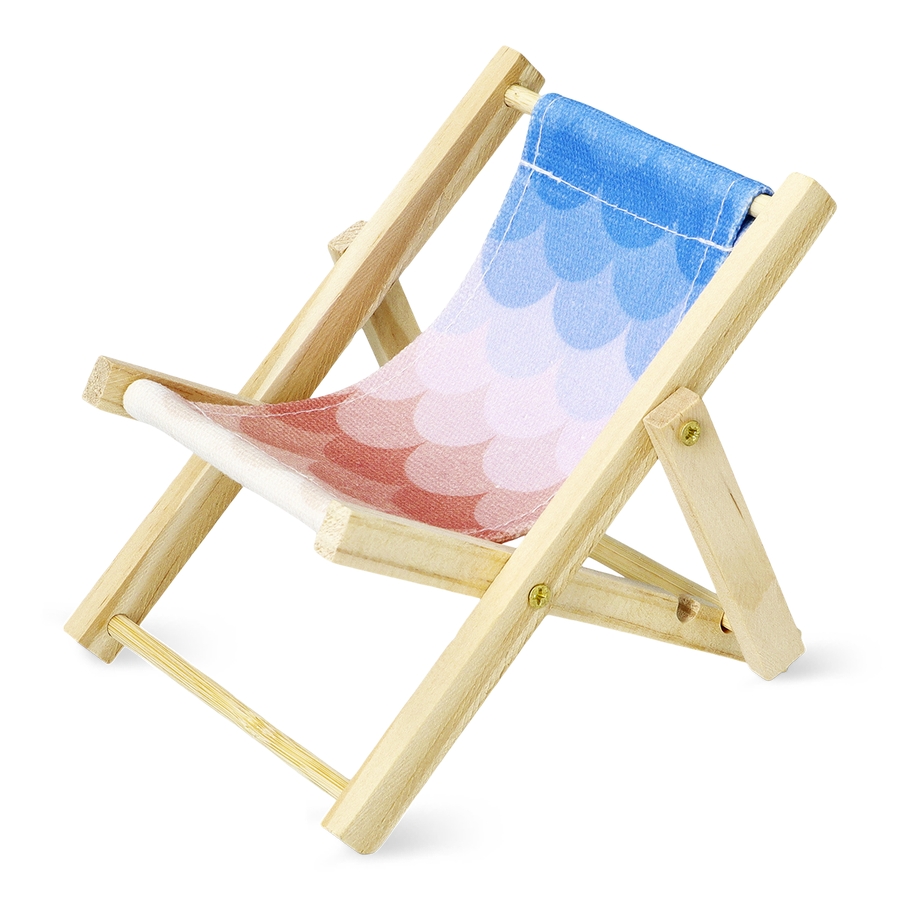 インテリアのアクセントになるデコラティブなチェア。このビーチチェアのミニチュアは、木製で鮮やかなファブリックプリントが施されています。サイズは16.2×0.9×10.8cmで、ジュエリーや鍵などを収納しながら、ビーチムードを演出するのに最適です。