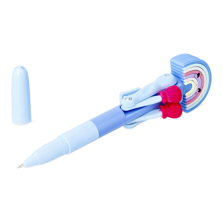 陽気な虹のトッパーをあしらった、一風変わったパンチングペンを手に入れよう。4×17.5×3.5cmのブルーのペンは、筆記に最適。押すだけで、パンチが楽しめます。パンチングペン。レインボー