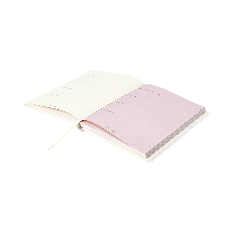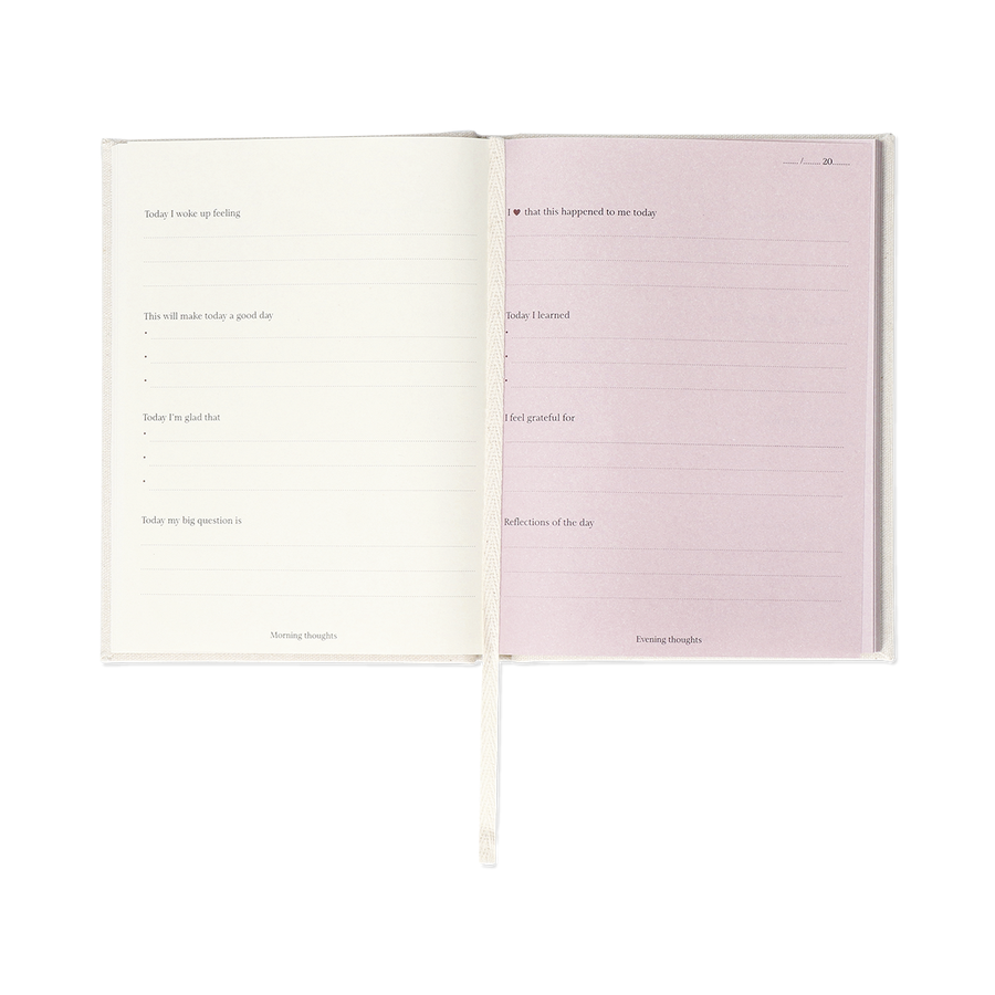 柔らかな白いリネンの表紙と英語のプロンプトが付いているので、忙しい日でも手軽にジャーナルを作成できます。