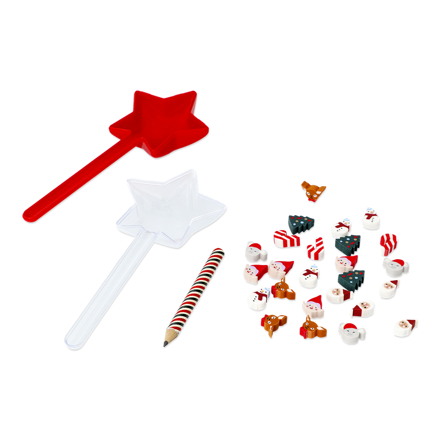 この星形の消しゴム付き鉛筆で、書く作業を楽しくしましょう。サイズ6.5 x 15.2 x 3.7cmのこのマルチカラー・プラスチック製ペンシルは、星形のトッパーにクリスマスデザインの小さな消しゴムが付いています。ホリデーシーズンにぴったりのこの鉛筆は、あなたのステーショナリーコレクションに遊び心を加えます。クリスマスのリストやメモを書き留めたり、チャーミングなストッキングのフィラーとしても最適。お子様から大人まで、クリスマスの準備にぴったりです。このユニークな星形の鉛筆で、ホリデー気分を楽しみましょう。
