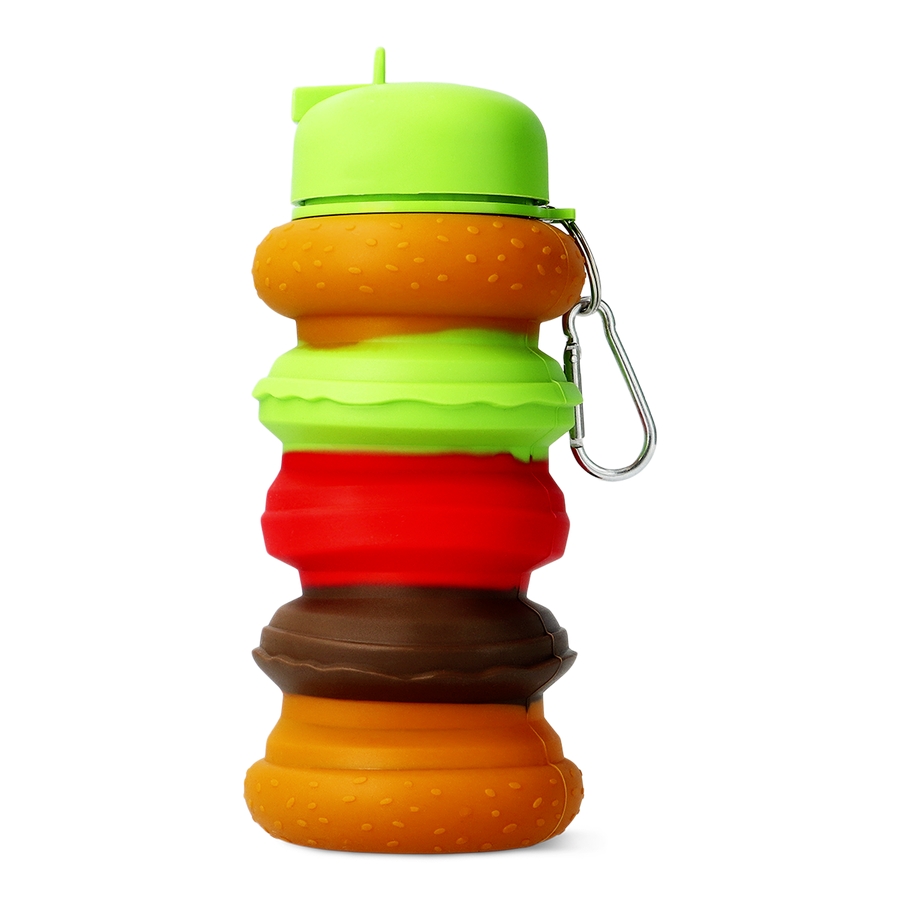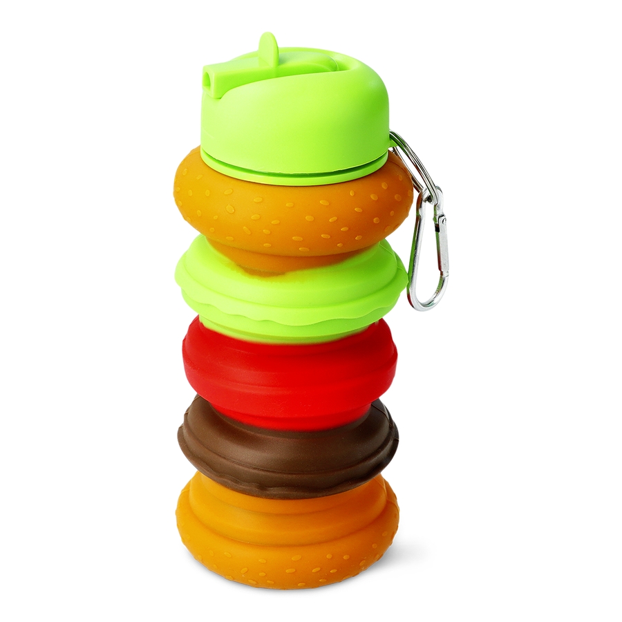 ハンバーガーを積み重ねたようなデザインの風変わりなウォーターボトルで、スタイリッシュに水分補給を。この食べ物をテーマにしたボトルは容量600mlで、折りたたみ可能なシリコン製。サイズは18×9cmで、簡単に折りたたんでコンパクトに収納できるので、外出先での使用に最適です。お出かけ用にパッキングしても、冷凍庫に保存しても、便利で遊び心のある携帯ボトルです。ユニークで機能的なキッチン雑貨がお好きな方にぴったりのハンバーガー型ドリンクボトルは、会話のきっかけになること間違いなし。