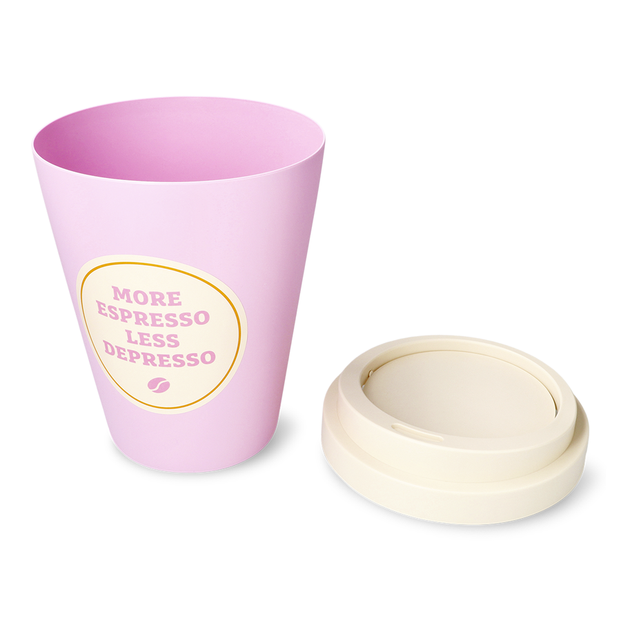 コーヒーカップの形をしたプッシュビン。25×32cmの大きさで、実用性と遊び心のあるデザインが巧みに組み合わされています。鮮やかな色合いと「More Espresso Less Depresso(もっとエスプレッソを、もっとデプレッソを)」のスローガンで、空間をすっきりさせながら、オフィスのインテリアに個性をプラスします。便利なプッシュ式のフタでゴミを捨てやすく、デスクが散らかりません。コーヒー好きの方や、一風変わったオフィス用品がお好きな方に最適です。