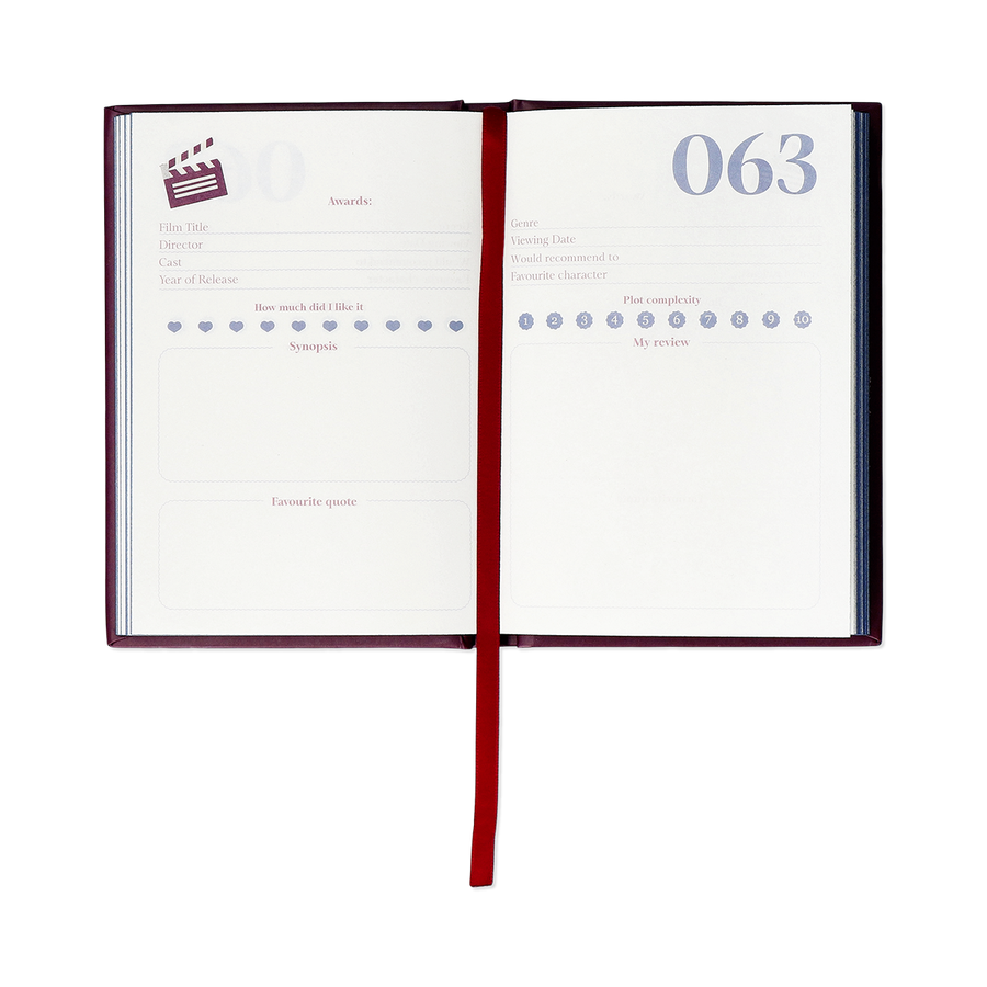 最大100本の映画のレビュー、評価、感想を書き留められるスペースが設けられた、よく考えられたデザインです。