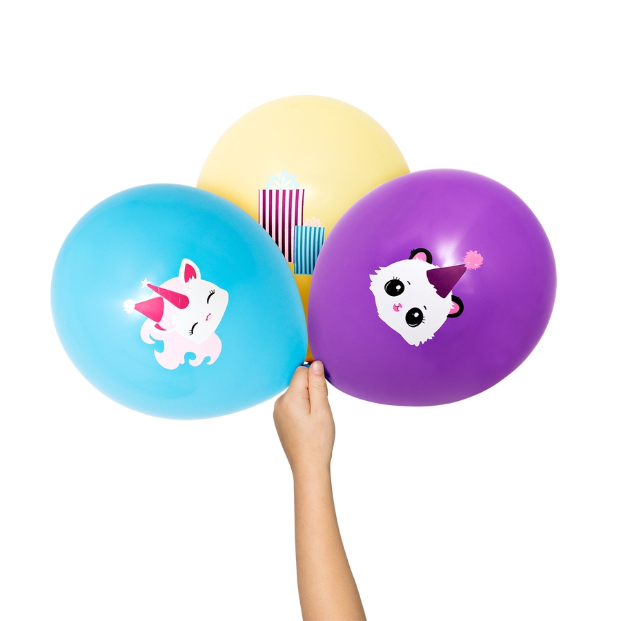 可愛らしいプリントと鮮やかな色使いのバルーン6個セットで、お祝いに遊び心をプラスしましょう。膨らませると30×32cmの大きさになるマルチカラーのバルーンは、パーティーのデコレーションに最適です。それぞれのバルーンには、動物やギフト、お祝いの要素など、楽しいデザインがミックスされており、誕生日や集まりなど、楽しいイベントに最適です。ラテックス製なので、明るく陽気な雰囲気に仕上がります。単品で使っても、飾り付けの一部として使っても、このプリントバルーンが特別な日を楽しく魅力的に彩ります。