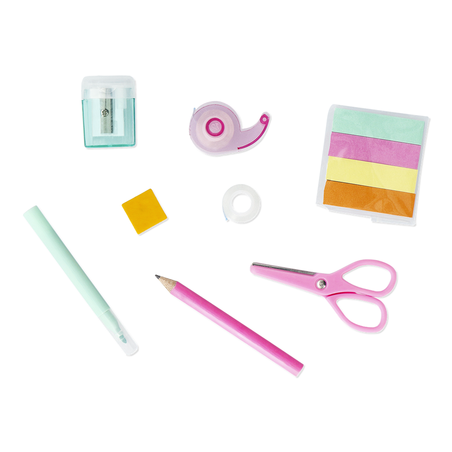 ひし形のボックスにすっきり収納できるコンパクトな文房具セットで、デスクを整理整頓してスタイリッシュに保ちましょう。サイズは10.2×8.6×3cm。このマルチカラーのキットには、学校、仕事、個人的なプロジェクトに必要なものがすべて入っています。中にはハサミ、付箋、テープ、鉛筆、シャープナー、消しゴムなどが入っています。学生や社会人に最適なこのセットは、毎日の事務用品に素早くアクセスできるように設計されており、整理整頓と準備に役立ちます。ユニークなダイヤモンド型のケースは、ワークスペースに自分らしさをプラスし、実用的でファッショナブルなデスク整理ツールになります。プレゼントや自分へのご褒美にも最適です。