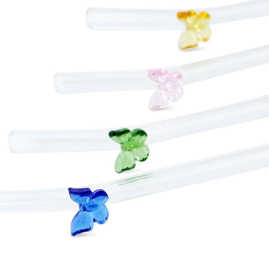 エンボス加工の蝶のデザインがチャーミングなガラス製ストロー4本セットで、飲み物にエレガントなタッチを加えましょう。サイズは19.7×1.3×3cmで、カクテルやワイン、日常的な飲み物に最適です。繊細なデザインは、使い捨てストローの代わりにもなり、テーブルセッティングに春を思わせる華やかさを添えます。ガラス製なので、食品に適しており、最高温度40℃までの飲み物に使用できます。マルチカラーの蝶がアクセントになっており、遊び心がありながらも洗練された美しさを醸し出しています。このスタイリッシュなストローで、この季節をお祝いしましょう。