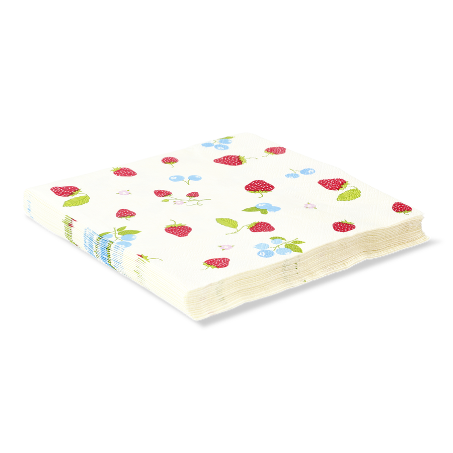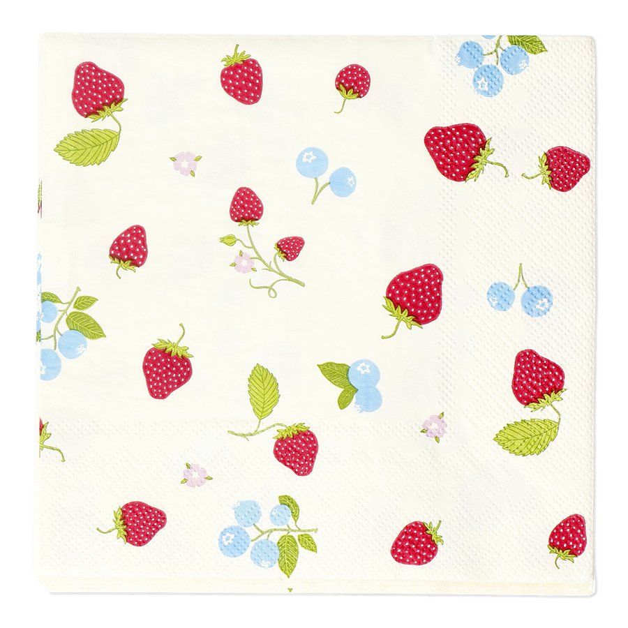 このサマーベリーナプキンの鮮やかな魅力で、テーブルセッティングを盛り上げましょう。ベリーからインスパイアされたカラフルなデザインのナプキン16枚セットは、折りたたむと16.5×16.5cm。紙製なので、普段の食事からお祝いのパーティーまで、春夏の食卓にぴったり。キッチンの必需品に加えたいナプキンは、実用的でありながら、テーブルの美観を高めてくれます。実用的でありながら、食卓の美的センスも高めてくれます。お集まりに最適で、陽気で季節感あふれる雰囲気を演出します。カジュアルにもエレガントにも使える、ベリーをモチーフにしたナプキンで季節を楽しみましょう。