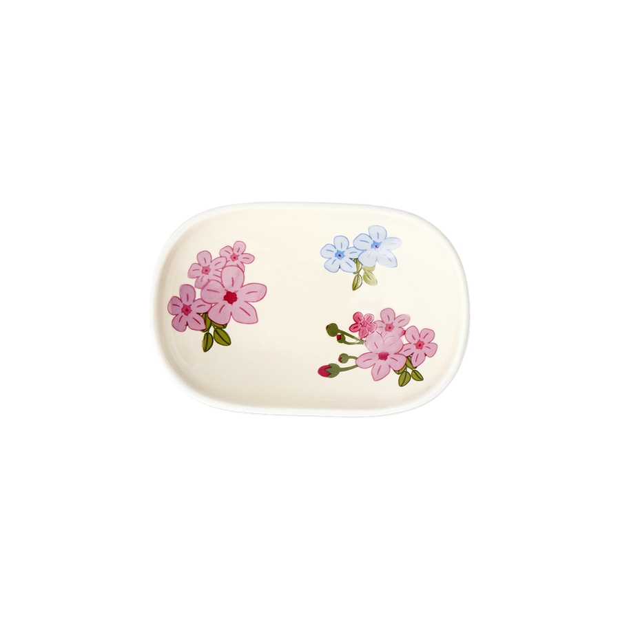 繊細な小花がプリントされた、エレガントな陶器の醤油皿。大きさ10.4×2.5×7cmのコンパクトな豆皿は、お醤油やディップ、薬味などをお料理と一緒に盛り付けるのにぴったりです。花柄のデザインは、テーブルセッティングにチャーミングなタッチを加え、毎日の食卓にも特別な日の食卓にも理想的なアイテムです。陶器製のこのボウルは、電子レンジ、冷凍庫、オーブン、食器洗浄機に対応しているので、便利でお手入れも簡単です。お寿司を食べるときにも、前菜を盛り付けるときにも、スタイリッシュで実用的なボウルです。