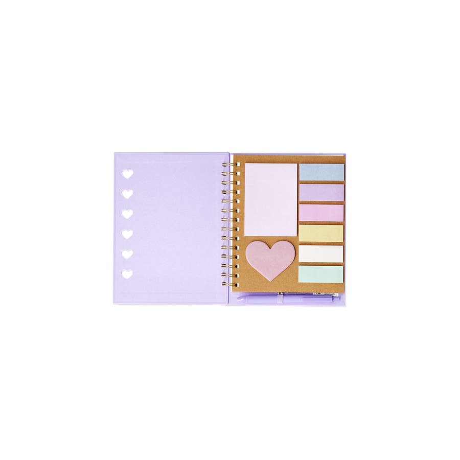 パープルのノートで、すべてを一箇所にまとめて整理しましょう。書き込み、計画、整理の機能が1冊に凝縮されたスタイリッシュなノートです。16 x 21 x 1.5cmのサイズで、96枚の罫線入りシートが滑らかな書き心地を提供します。スパイラル綴じなのでノートを平らに置いてメモを取りやすく、付属のボールペンを使えばいつでもアイデアを書き留めることができます。ページ横には240枚の付箋紙が付いており、ページに印を付けたり、重要なタスクにハイライトを入れたりするのに最適です。ハート型のタブ仕切りと洗練された仕上げが特徴のこのノートは、勉強会、仕事のメモ、クリエイティブな日記に最適です。