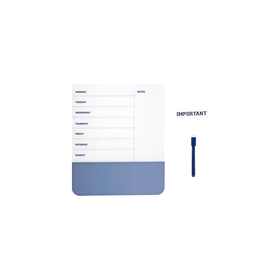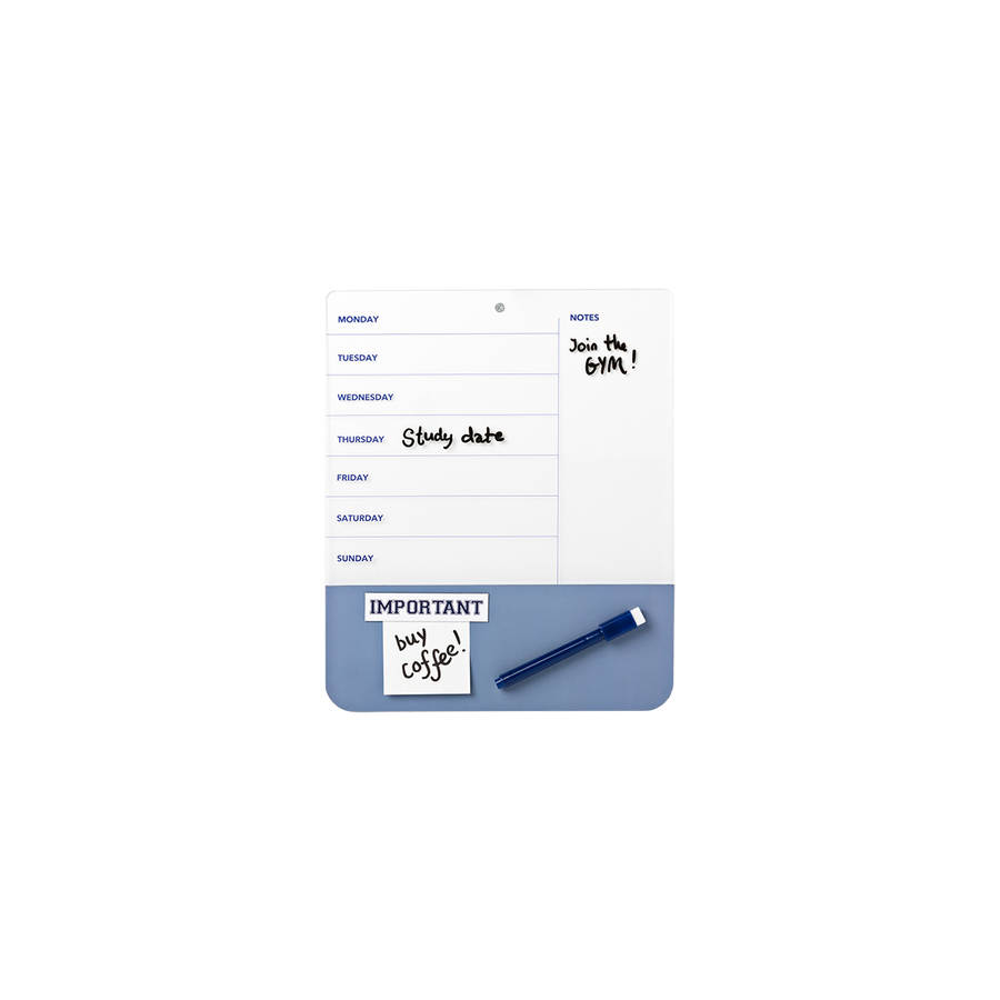 ホームオフィスやキッチン、書斎のコーナーにぴったり。 曜日ごとに専用スペースが設けられたすっきりとしたレイアウトで、サイドにはメモを書き込める欄もあります。 マッチする消せるマーカーが付いているので、何度でも書いたり拭いたりできます。 裏面にはマグネットが付いているので、金属面にすばやく簡単に貼り付けることができ、いつでも手の届くところにスケジュールを置いておけます。 ベースの柔らかな色調のカラーパレットと魅力的なリボンのディテールが、実用的なデザインに装飾的なタッチを加えています。1週間を効率よく、計画的に過ごすための理想的なツールです。