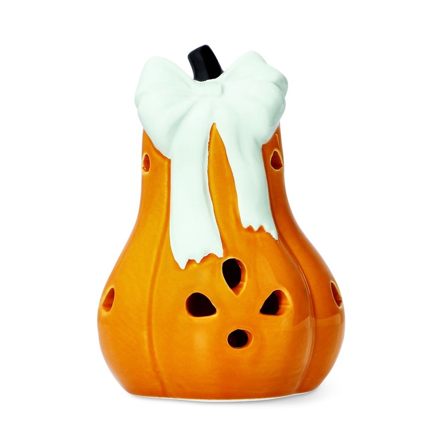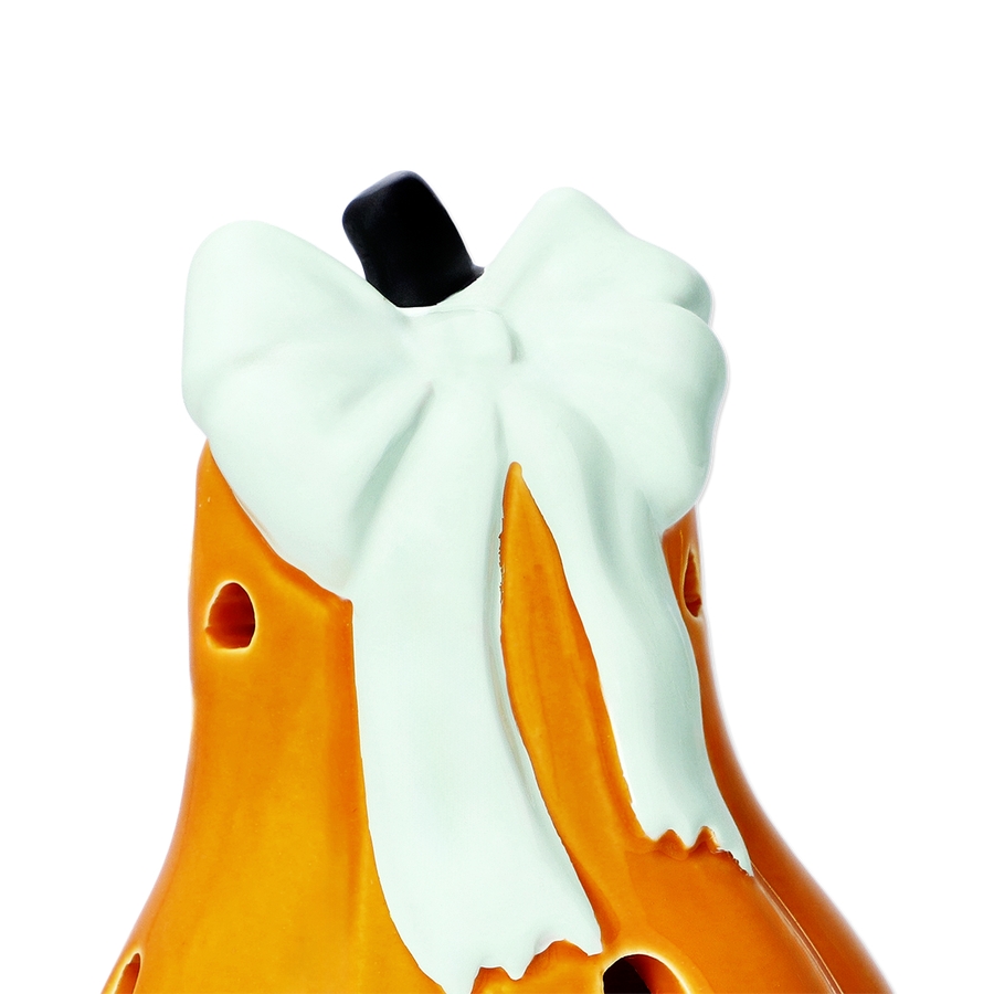 リボンが付いたパンプキンライトで、ハロウィンのデコレーションに温かみのある輝きを添えましょう。