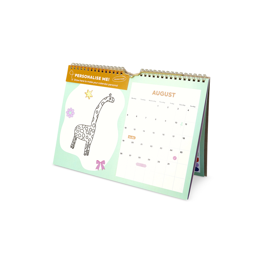 絵が描けたりステッカーが貼れるDIYカレンダーで、一年中創造性を解き放ちましょう。計画に個性を加えるのに最適で、各ページには描き込み、スケッチ、メモのための専用スペースと、実用的な月間概要が用意されています。カレンダーのサイズは29.7 x 21 x 0.5cmで、デスク、子供部屋、クリエイティブなコーナーに最適です。楽しいステッカーが付属しているので、遊び心のある魅力的なスケジュール管理ができます。カラフルで多彩なデザインは、毎日の計画に喜びをもたらし、ユーザーがインタラクティブにスケジュールをカスタマイズすることを促します。特別な日を記す時も、想像力を自由に羽ばたかせる時も、このカレンダーは、構成と自己表現の絶妙なバランスを提供します。