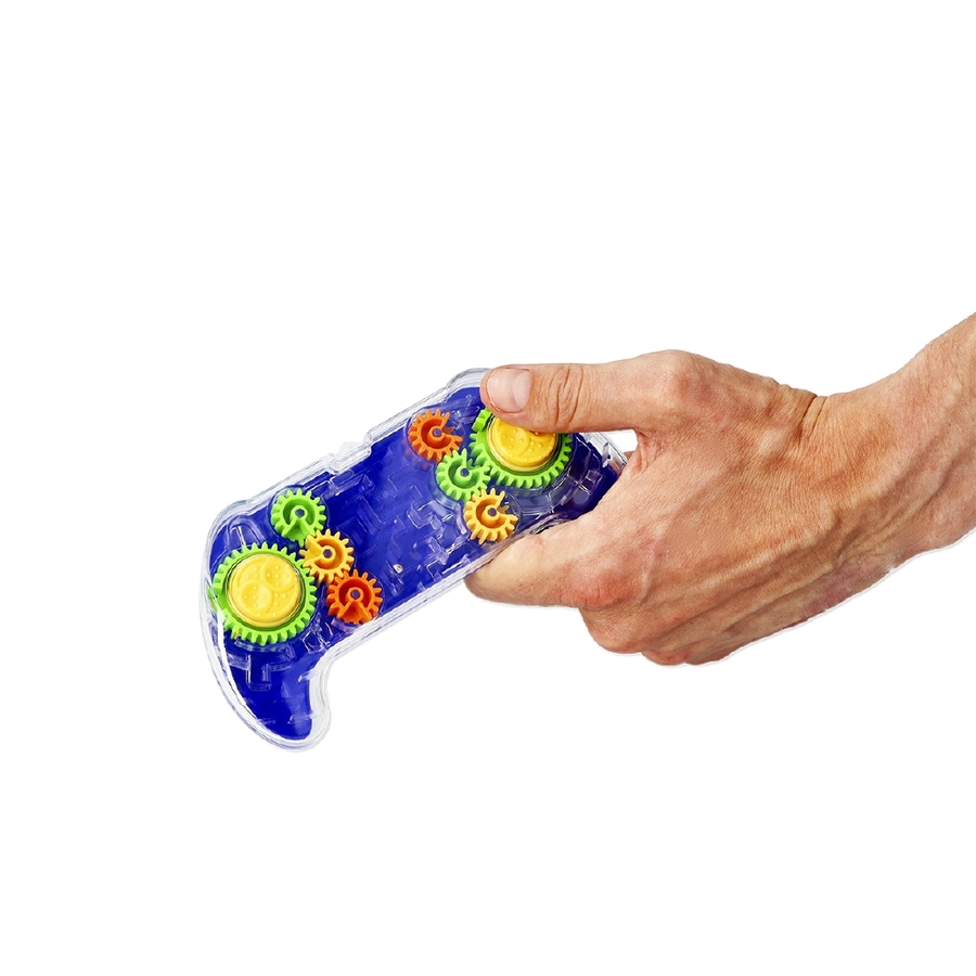 ゲームコントローラーのような形と可動パーツが満載のこのゲームは、巧妙に絡み合った回転ギアを駆使して、小さなボールを迷路を進めます。