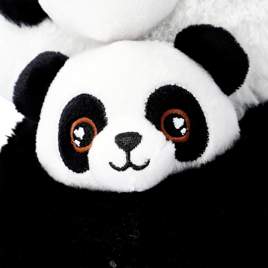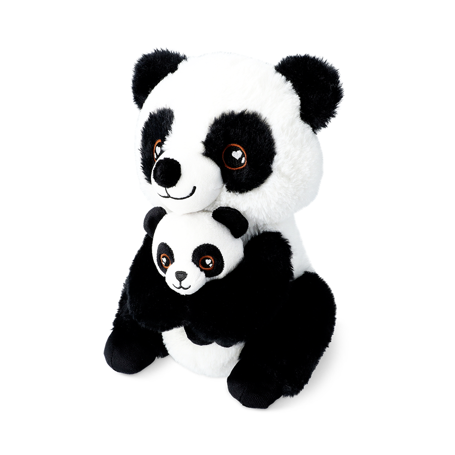愛らしいぬいぐるみのパンダは、小さな子パンダをしっかりと抱きしめ、心地よさと愛らしさを兼ね備えた抱きしめたくなるお友だちです。