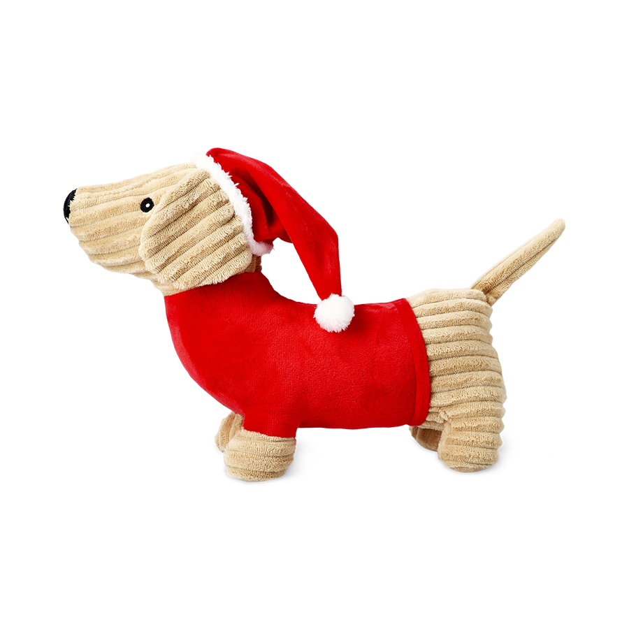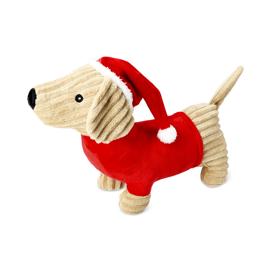 鮮やかな赤い衣装とサンタ帽をまとった、愛らしいXmasダックスフントで、遊び時間に華やかさをプラスしましょう。