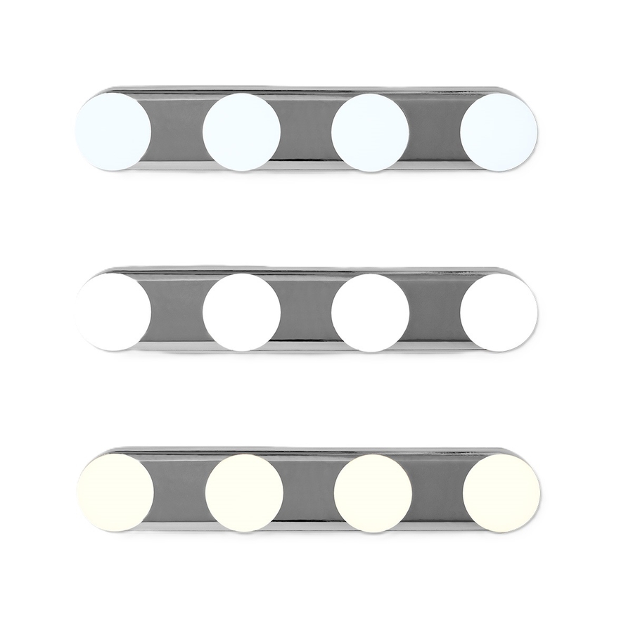均等に間隔を空けて配置された4つの電球は、時間帯に合わせて複数の明るさ設定が可能で、メイク中の視認性を高めます。サイズは5.7 x 6.3 x 30.2cmで、ほとんどの化粧台やバスルームの鏡に快適にフィットします。