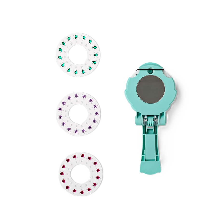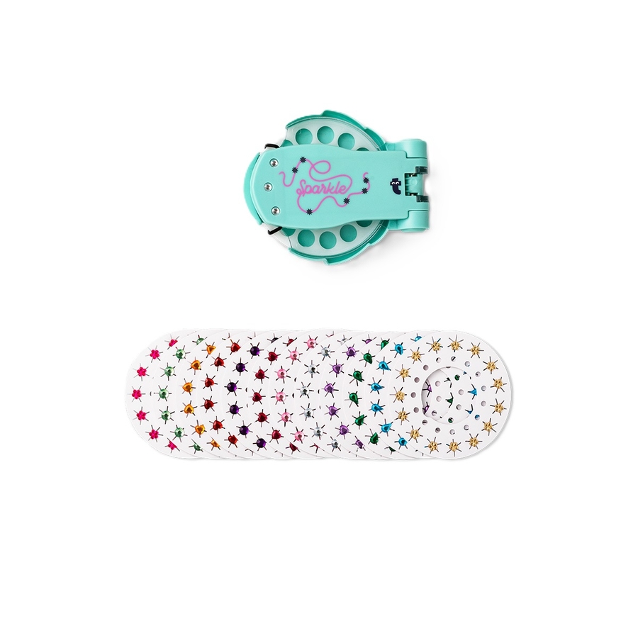 ホッチキスのような形をしたこのヘアデコレーターは、様々な装飾用ジュエルが入った12個のリフィルが付属。