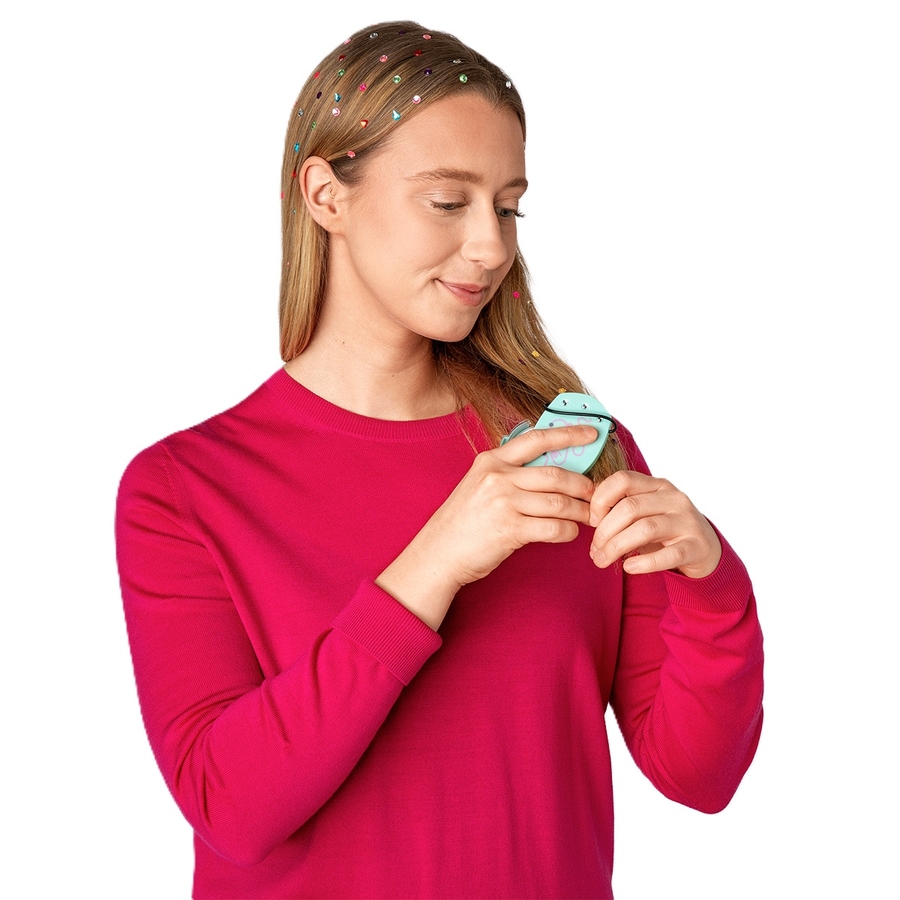 ピンクのヘアデコレーターで、ヘアスタイルに遊び心のある輝きをプラス。楽しいジュエルアクセントを数秒で付けられます。