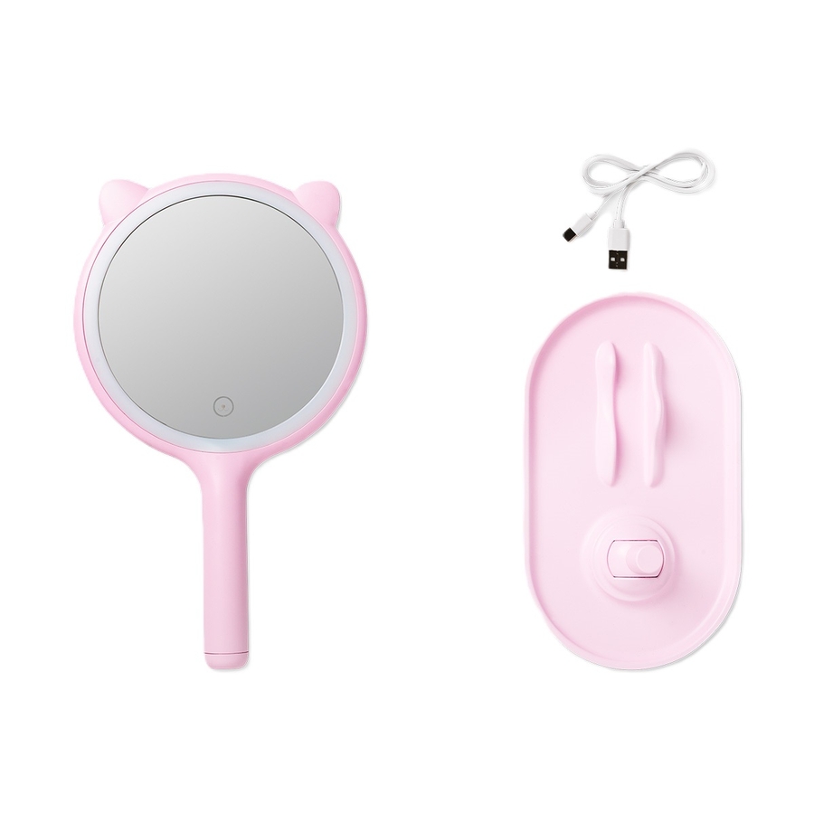 柔らかなピンクのプラスチックでデザインされたこのミラーは、小さな猫耳が付いた丸いミラーが魅力です。