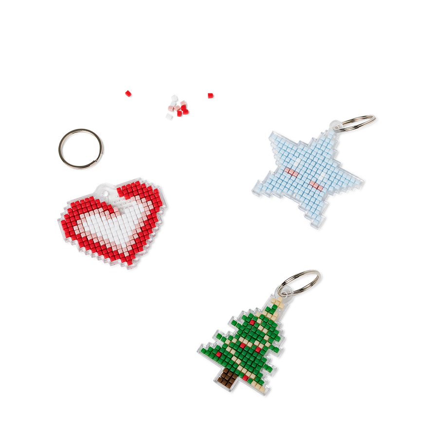 バッグの装飾に、手作りチャームのプレゼントに、あるいは単にクリスマスの気分を盛り上げるためにも、ビーズのキーリングが季節に彩りと喜びをもたらします。