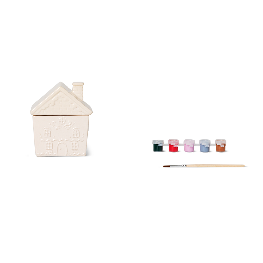 取り外し可能な屋根型の蓋、絵筆、そして絵具がセットになっており、定番のジンジャーブレッドデザインに自分だけのカラフルなタッチを加えることができます。