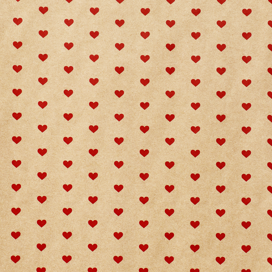 小さな赤いハートをちりばめたクラフト包装紙で、チャーミングにラッピング。