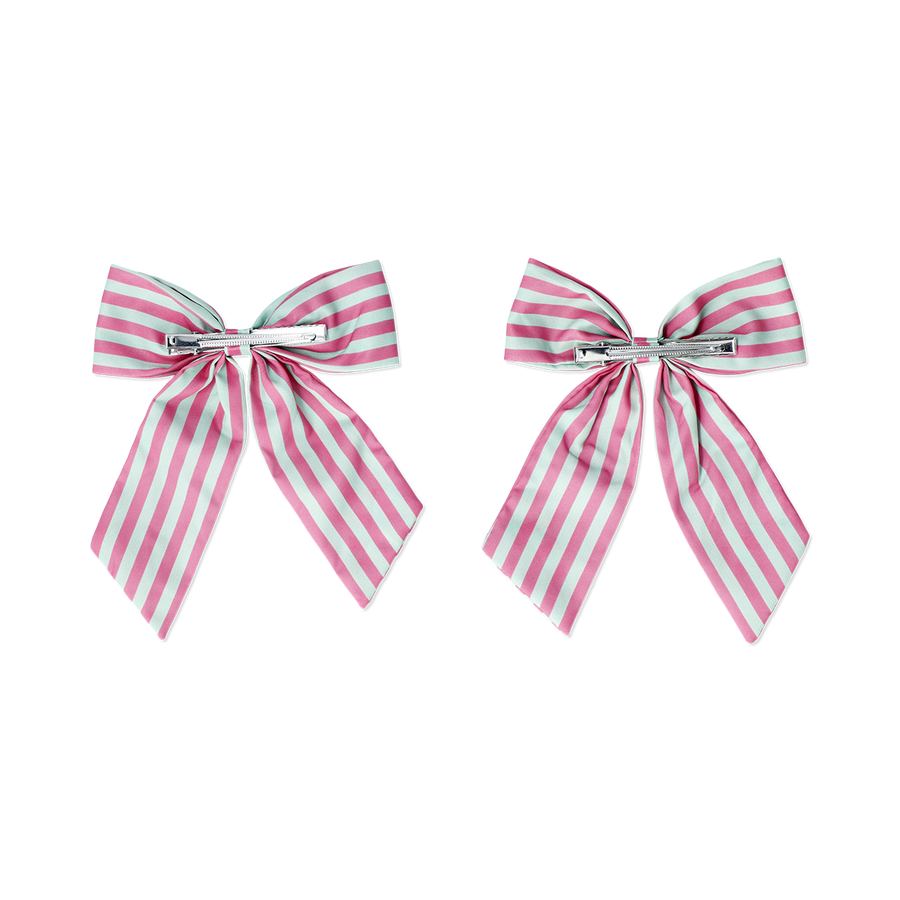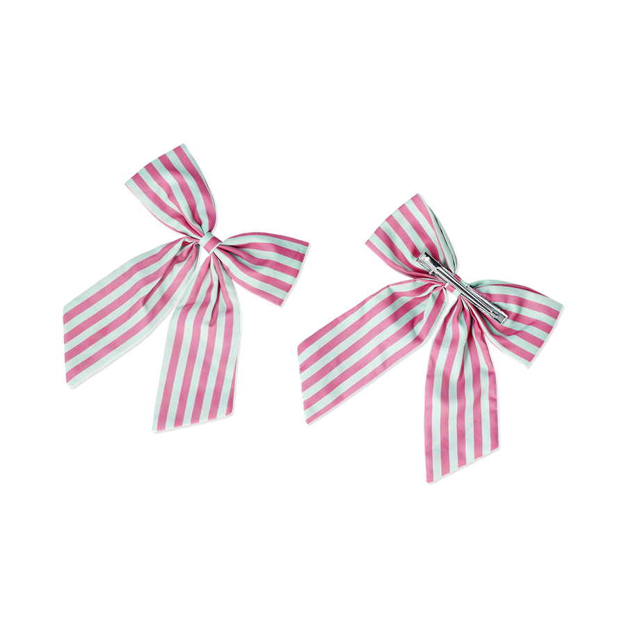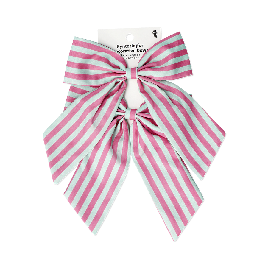 シーズンデコに遊び心の仕上げを。各1×20×14.5cm、ポリエステル製。ピンクとミントグリーンの交互ストライプがフレッシュで軽やかな印象です。クリップ式でリースやガーランド、ラッピング、テキスタイルデコに簡単装着。セット使いでも単体でも、統一感のあるアイキャッチを生み出します