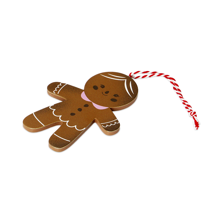 クリスマスツリーや季節のディスプレイを華やかに彩る、木製のジンジャーブレッドマンのオーナメントで、クリスマスのデコレーションに可愛らしいアクセントを添えましょう。クラシックなブラウンの仕上げに、愛らし??いディテールとピンクのリボンがアクセントとなり、遊び心とノスタルジックな雰囲気をお部屋に演出します。サイズは0.5×10×7.5cm。軽量で、付属の赤と白の紐を使って簡単に吊るせます。ツリーに飾ったり、窓辺に飾ったり、ギフトラッピングのアクセントとして使ったり、ホリデーデコレーションに温かみのある明るい雰囲気を添えてくれます。