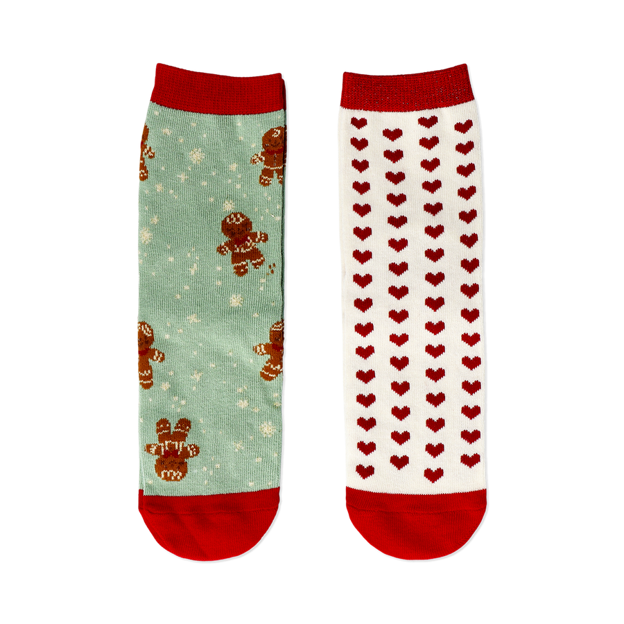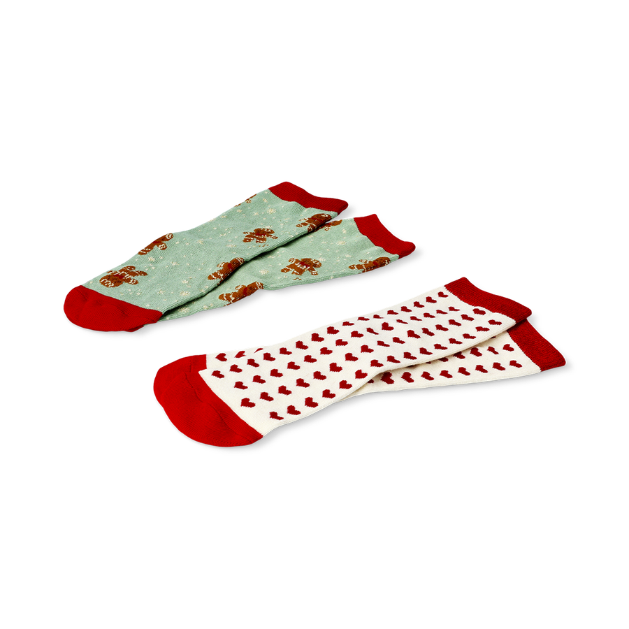 ジンジャーブレッド柄と赤いハート柄のソックスが入った、36/38(23-24cm)サイズの2足セット。ブーツの中に重ね履きしても、家でくつろぐときにもぴったりです。ジンジャーブレッドハウス型のギフトボックス入りで、そのままプレゼントにもGood。クリスマスのプチギフトや、自分への小さなご褒美にもぴったりのアイテム。冬の足元を楽しくしてくれる、心あたたまるソックスセットです。
