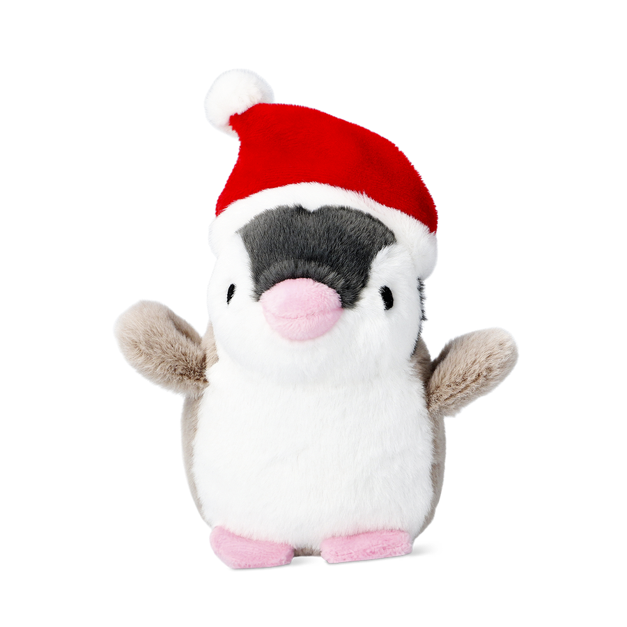 しっぽをふりふり動かす、愛らしいペンギンのぬいぐるみ。ふわふわのボディに赤いサンタ帽、ピンクのくちばしと足がチャーミングなアクセントになっています。サイズは8×12×7cm。おもちゃとしても、冬のインテリアデコレーションとしてもぴったりです。動かすとやさしく揺れるしっぽがとってもキュート。ツリーの下やプレゼントボックスの中に添えれば、笑顔を届けてくれること間違いなし。冬のぬいぐるみコレクションに加えたい一品です。