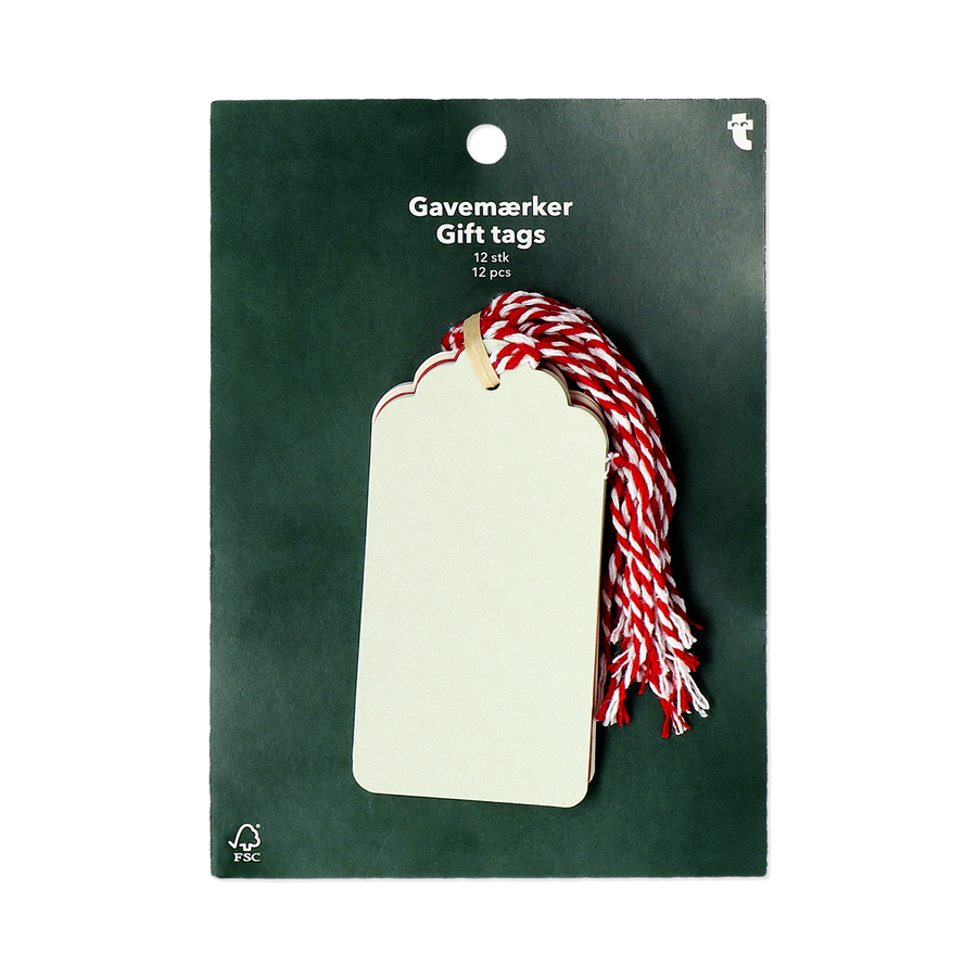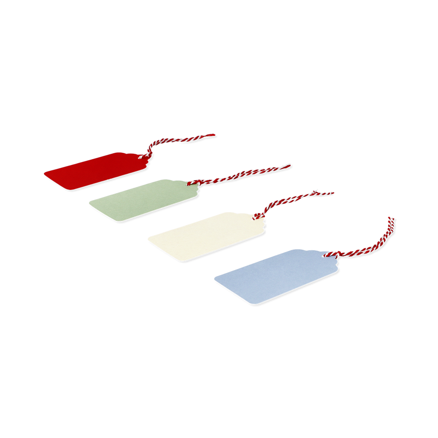 赤と白のストリング付きギフトタグ12枚セットで、ラッピングにひと工夫を。タグは5×10cmで、名前やメッセージを書くのに十分なスペースがあります。柔らかな色合いの紙素材で、どんな包装にもマッチ。赤×白の紐がクリスマスらしいアクセントになります。季節のギフトはもちろん、年間を通して使いやすいシンプルデザイン。小さなタグが贈り物に温もりを添える、Goodなアイテムです。